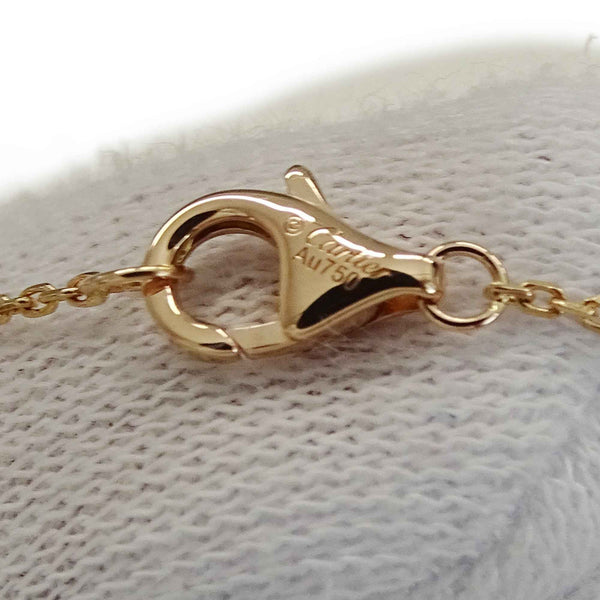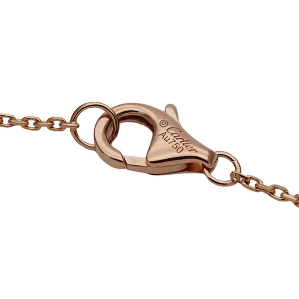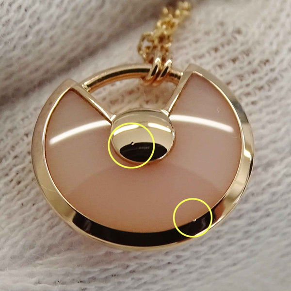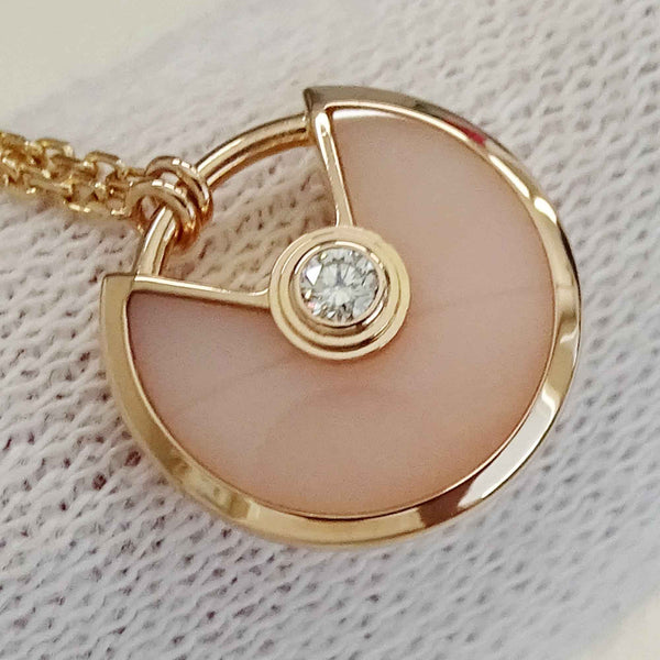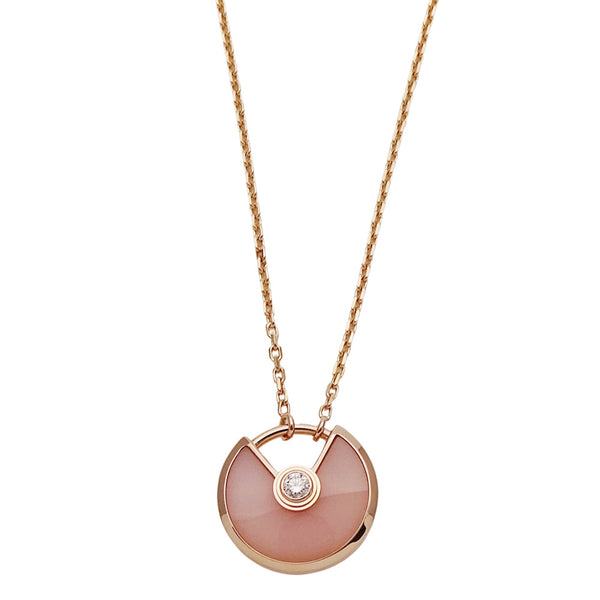 Cartier necklace for women, brand name 750PG pink opal and diamond amulet, gold jewelry, polished.