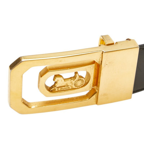 Celine Horsecarriage Belt in Black and Gold Plated Leather for Women