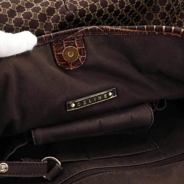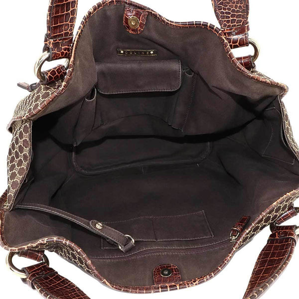 Celine Macadam Tote Bag in Brown Embossed Canvas and Leather with Gold Hardware