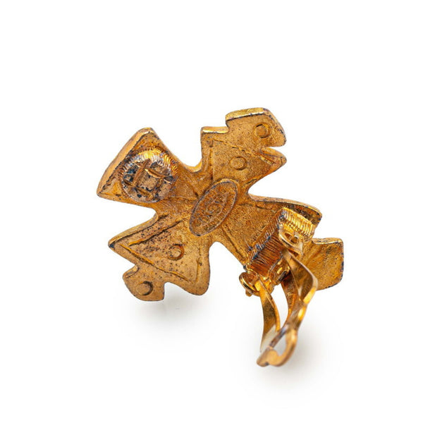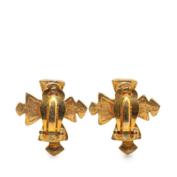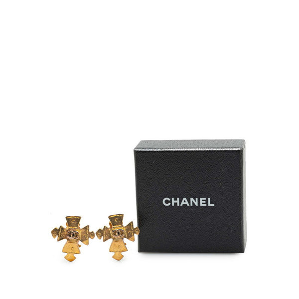 CHANEL Cross Motif Earrings, Gold Plated, Women\'s