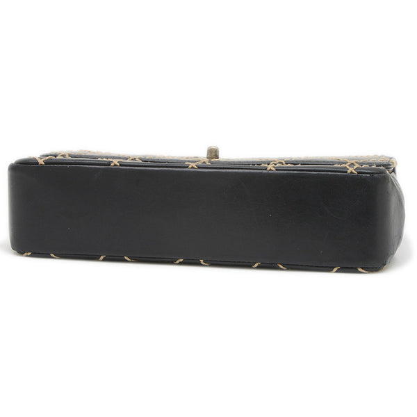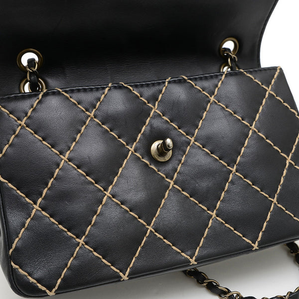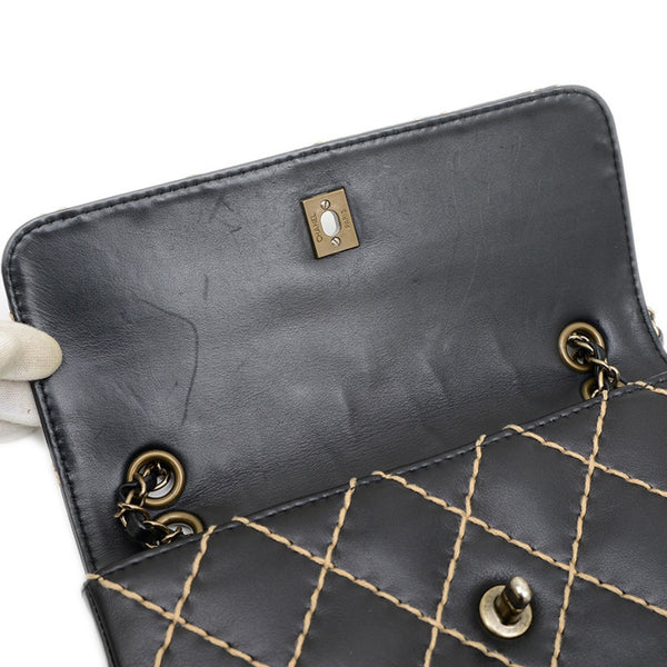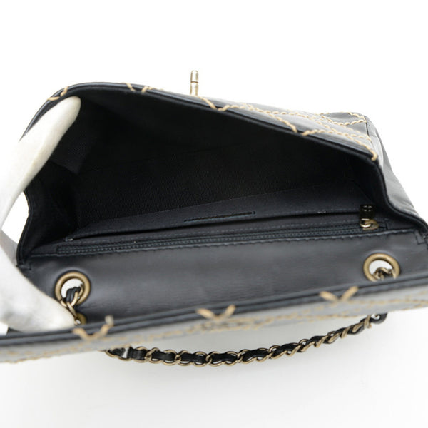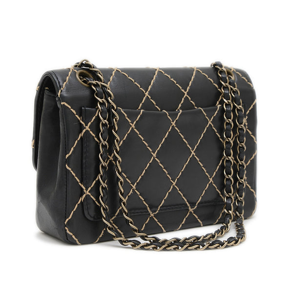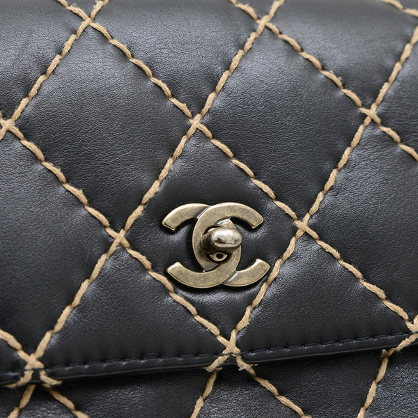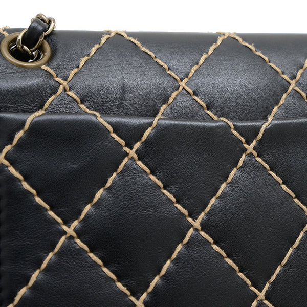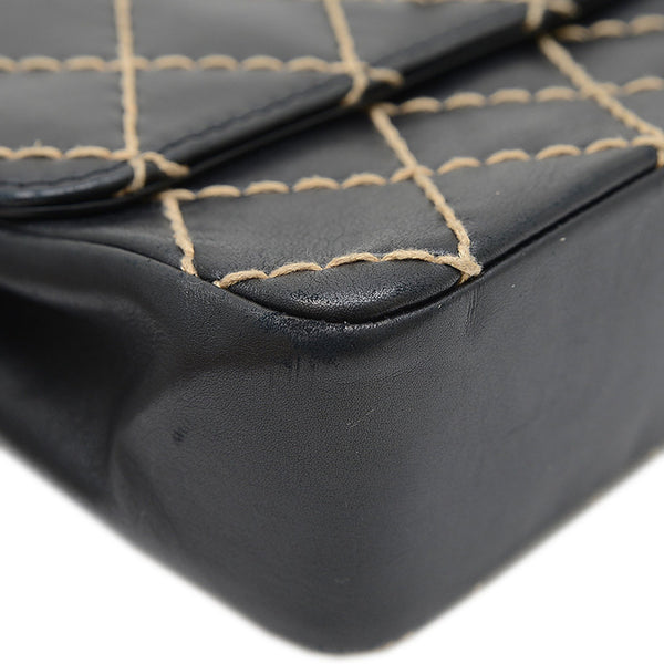 Chanel Matelasse Wild Stitch Chain Shoulder Bag in Black Leather with Silver Hardware
