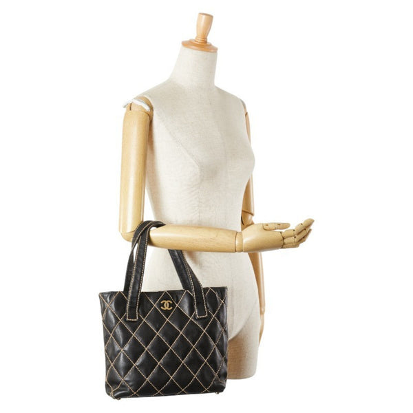 CHANEL Wild Stitch Coco Mark Tote Bag in Black Leather for Women