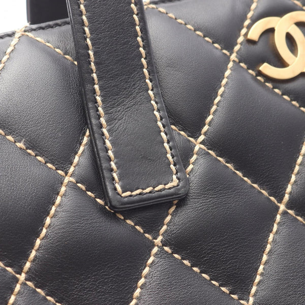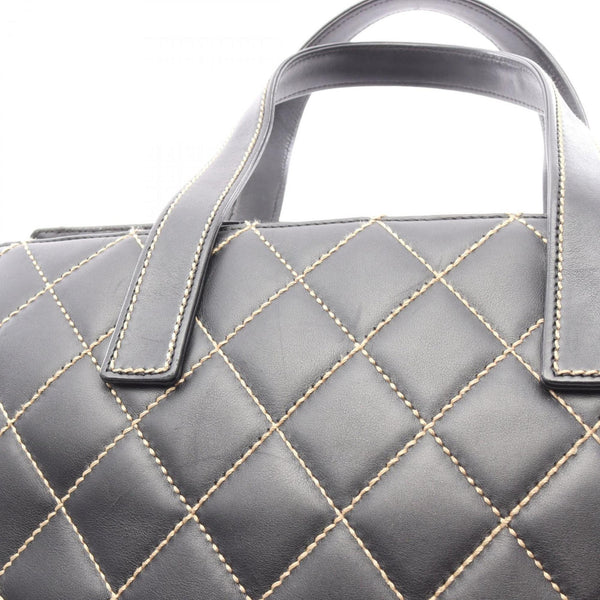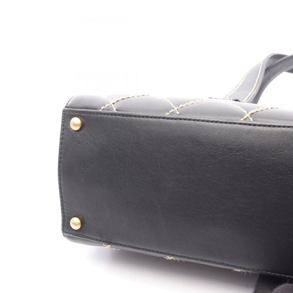 CHANEL Wild Stitch Handbag, Leather, Women\'s, Black