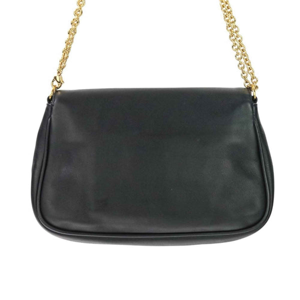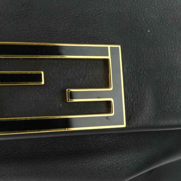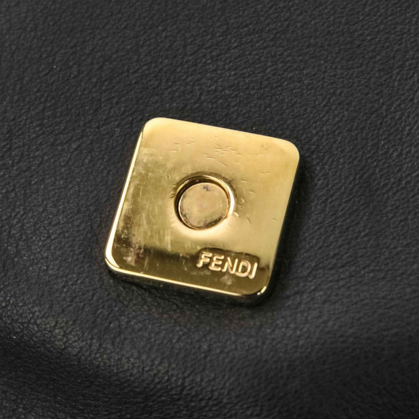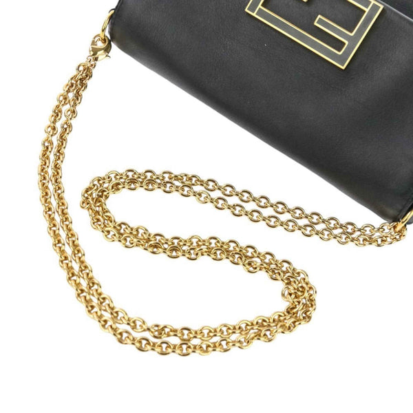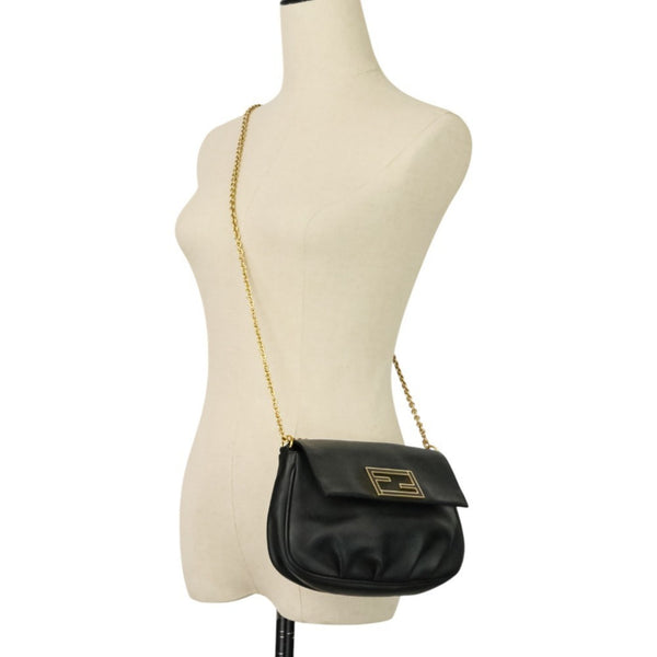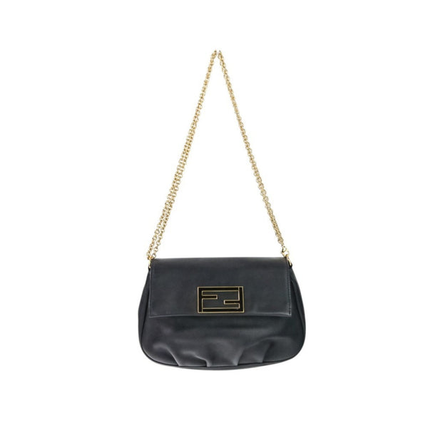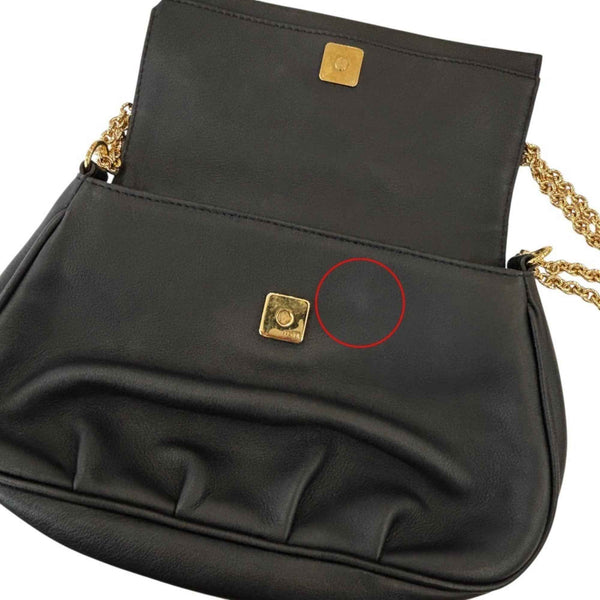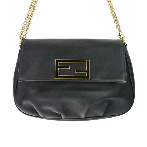 FENDI Leather Flap Chain Shoulder Bag 8M0276 Black Women\'s
