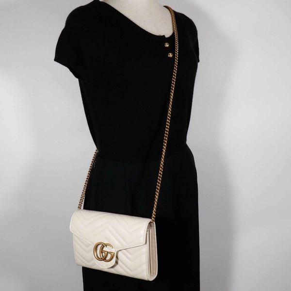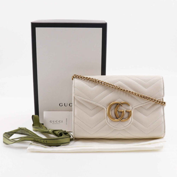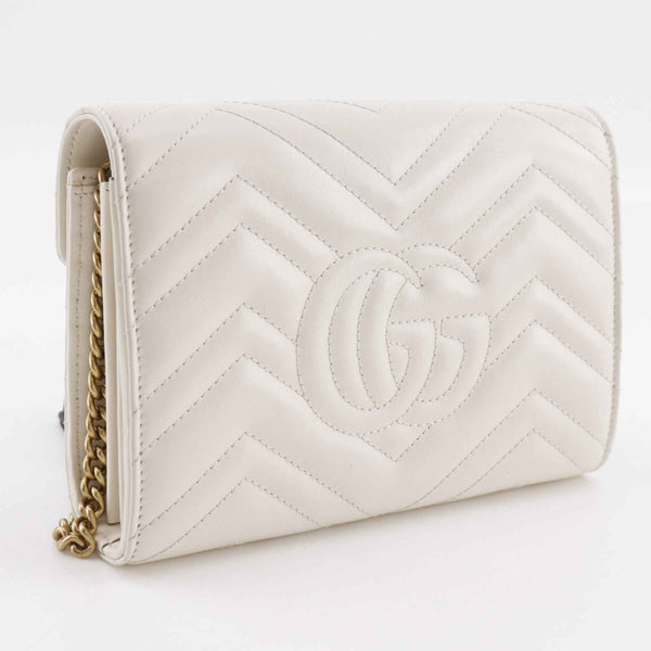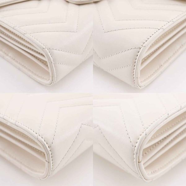 Gucci GG Marmont Chain Wallet/Clutch, White Calfskin, Snap Buttons, 474575, Women\'s