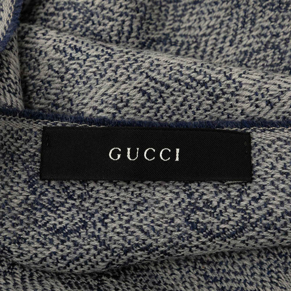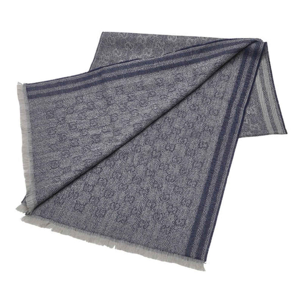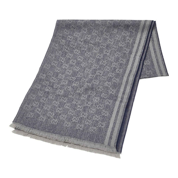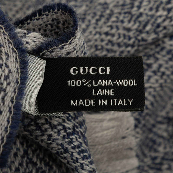 Gucci GG Wool Scarf, Beige and Navy, Women's, GUCCI