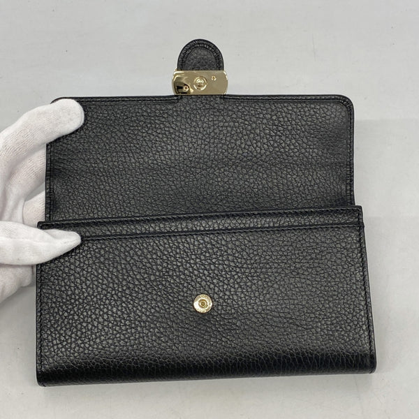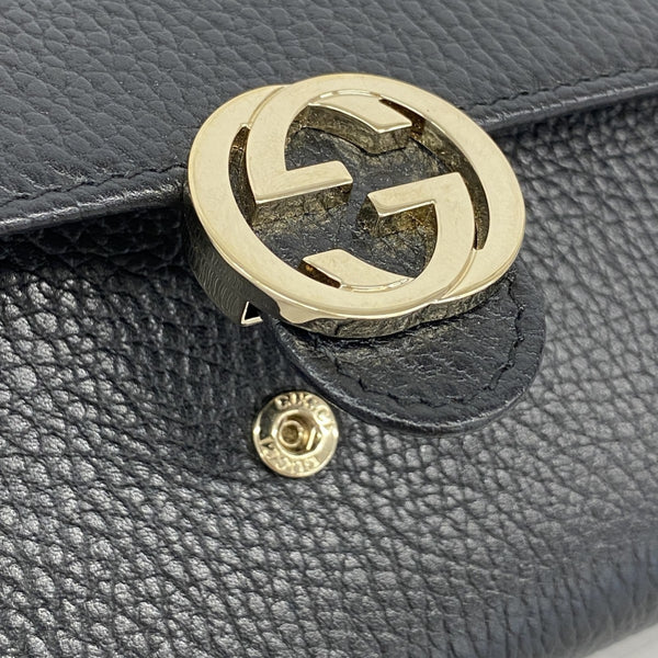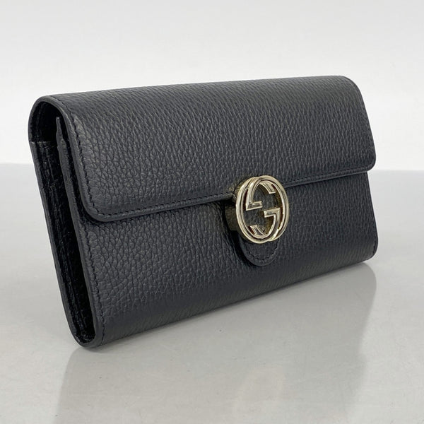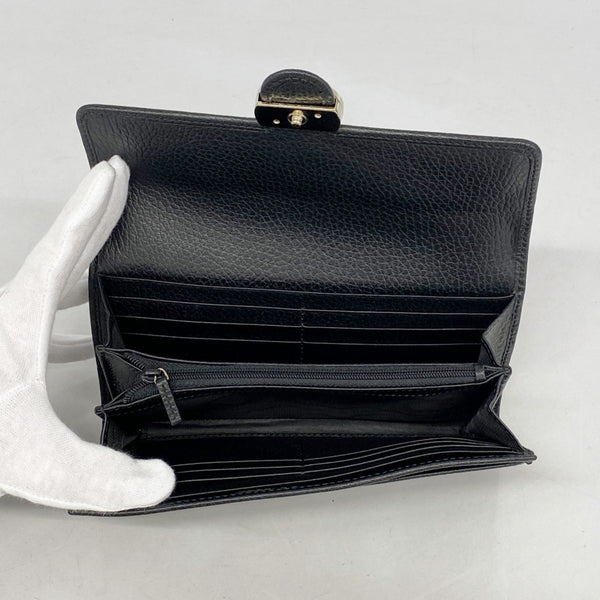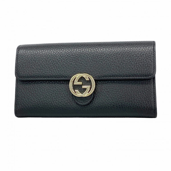 Gucci Interlocking G Long Wallet 615524 Leather Black Champagne Women\'s
