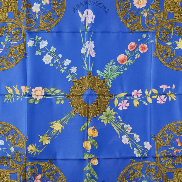 Hermes Carre 90 ARABESQUES Arabesque Scarf Muffler Blue Multicolor Silk Women\'s HERMES