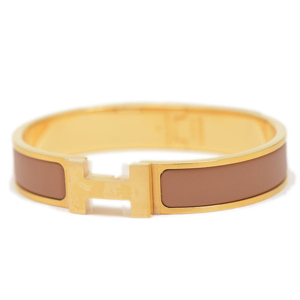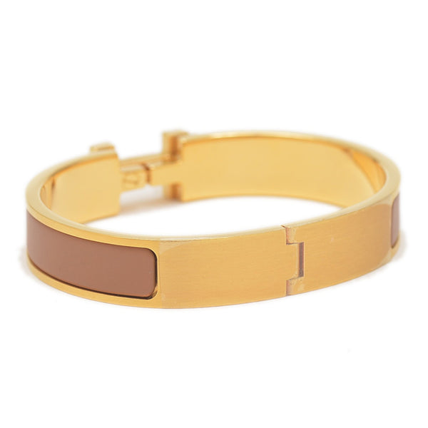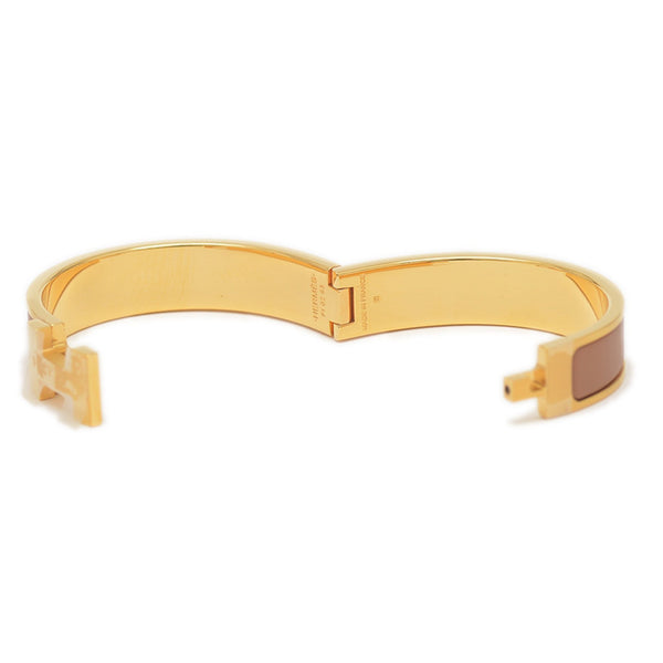 Hermes Hermès Click HH Clack PM Bangle in Brown and Gold Metal