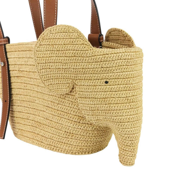 LOEWE Elephant Basket Bag, Small, Raffia Natural Brown, Women\'s