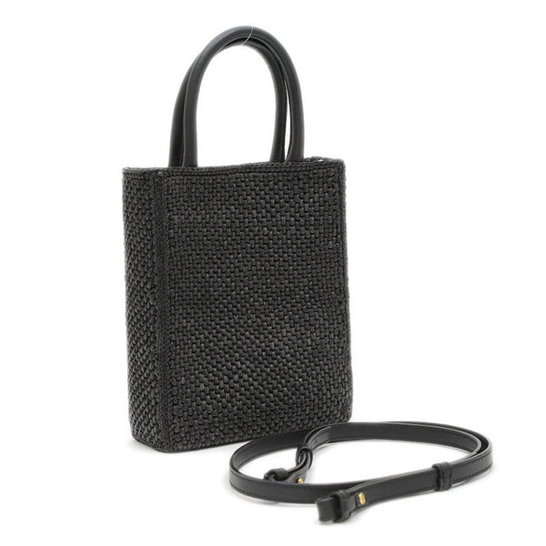 Loewe Standard A5 Shoulder Bag in Raffia and Leather, Black, A563S30X09