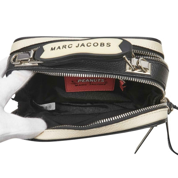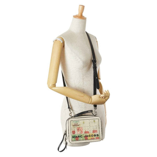 Marc Jacobs x Peanuts Snoopy The Box Handbag/Shoulder Bag, 2-Way, Beige/Black Leather, Women\'s, MARC JACOBS