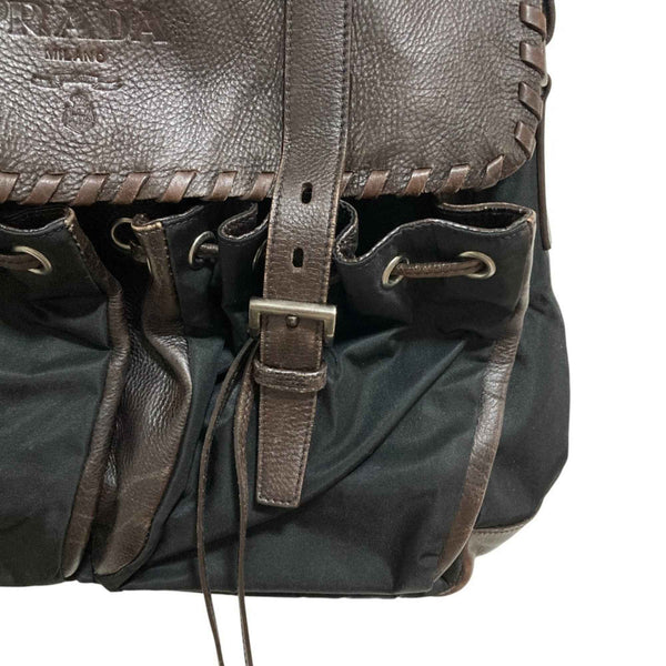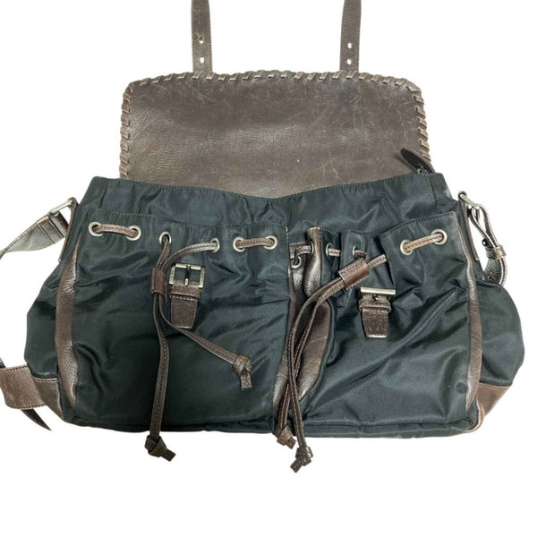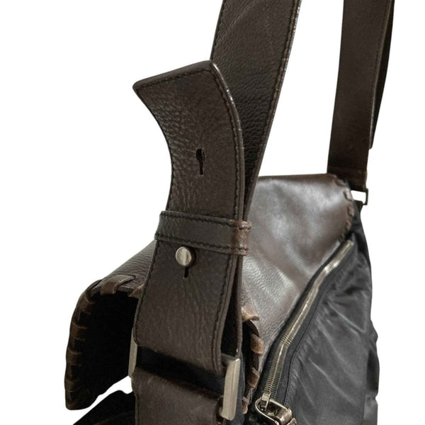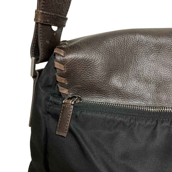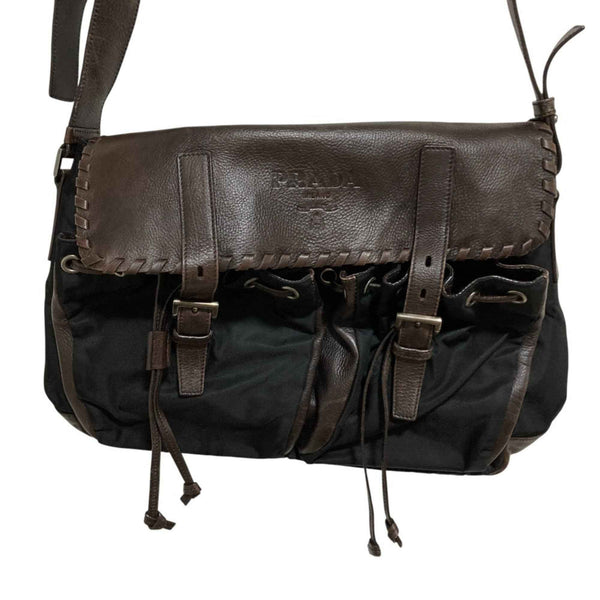 PRADA Prada Leather and Nylon Shoulder Bag/Messenger Bag BT0582 Brown/Black for Men Women
