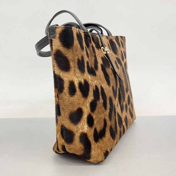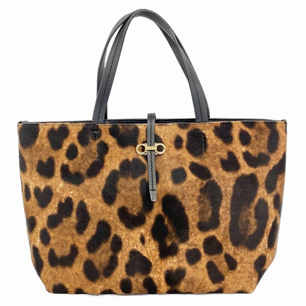 Salvatore Ferragamo Gancini Tote Bag, Leopard Print, Harako, Brown, Black, Champagne, Women\'s