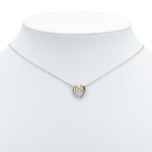 Tiffany & Co. Heart Ribbon Motif Necklace in Silver and Gold, SV925 18K Gold. Women\'s. TIFFANY