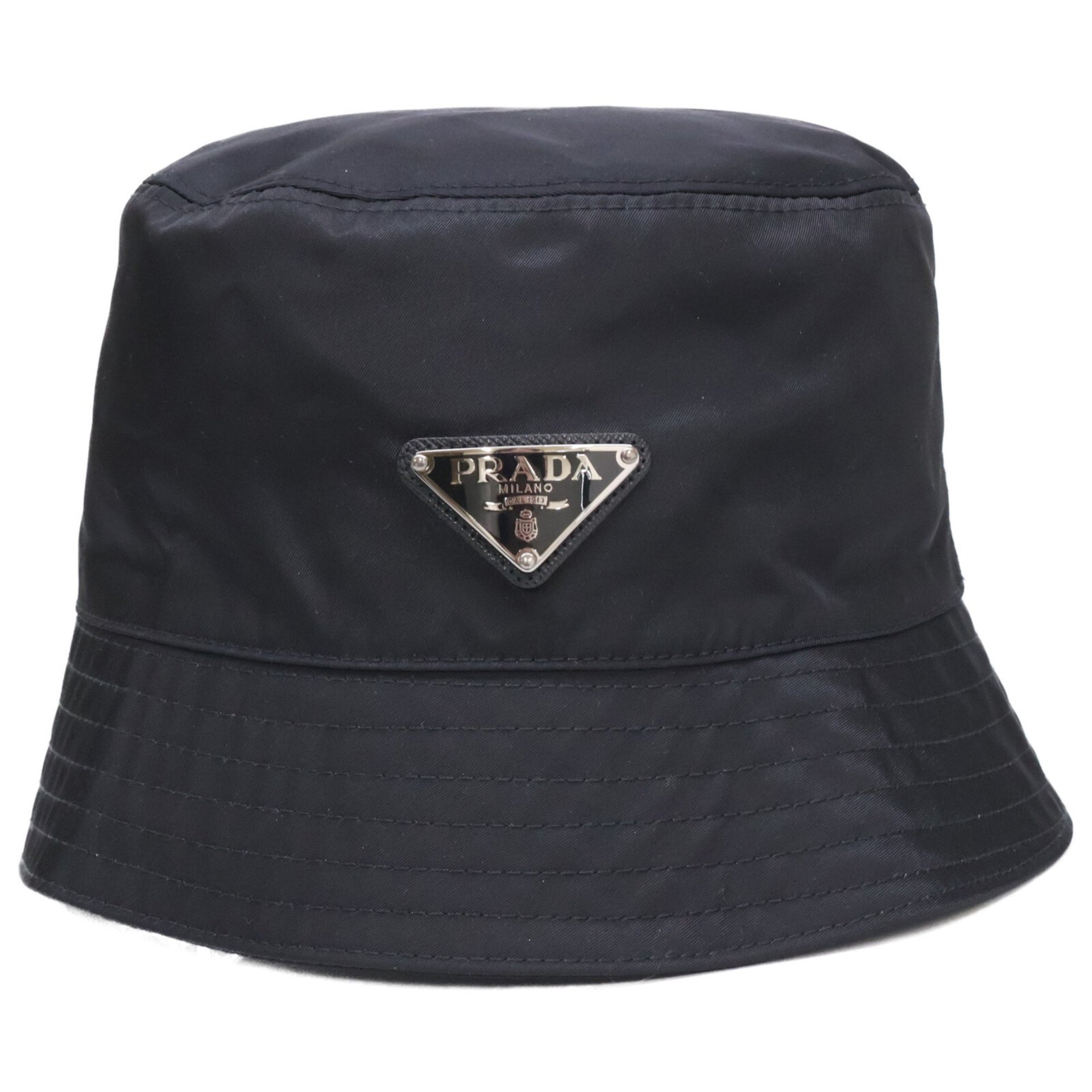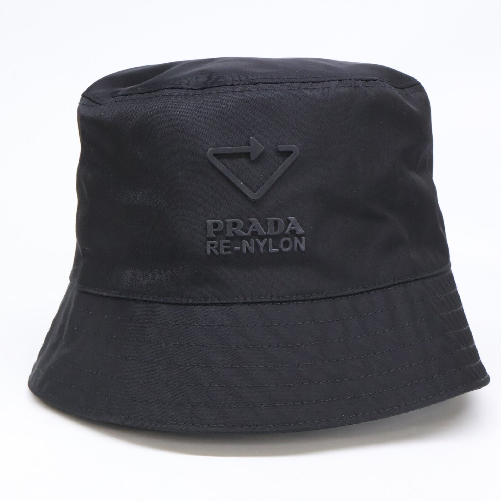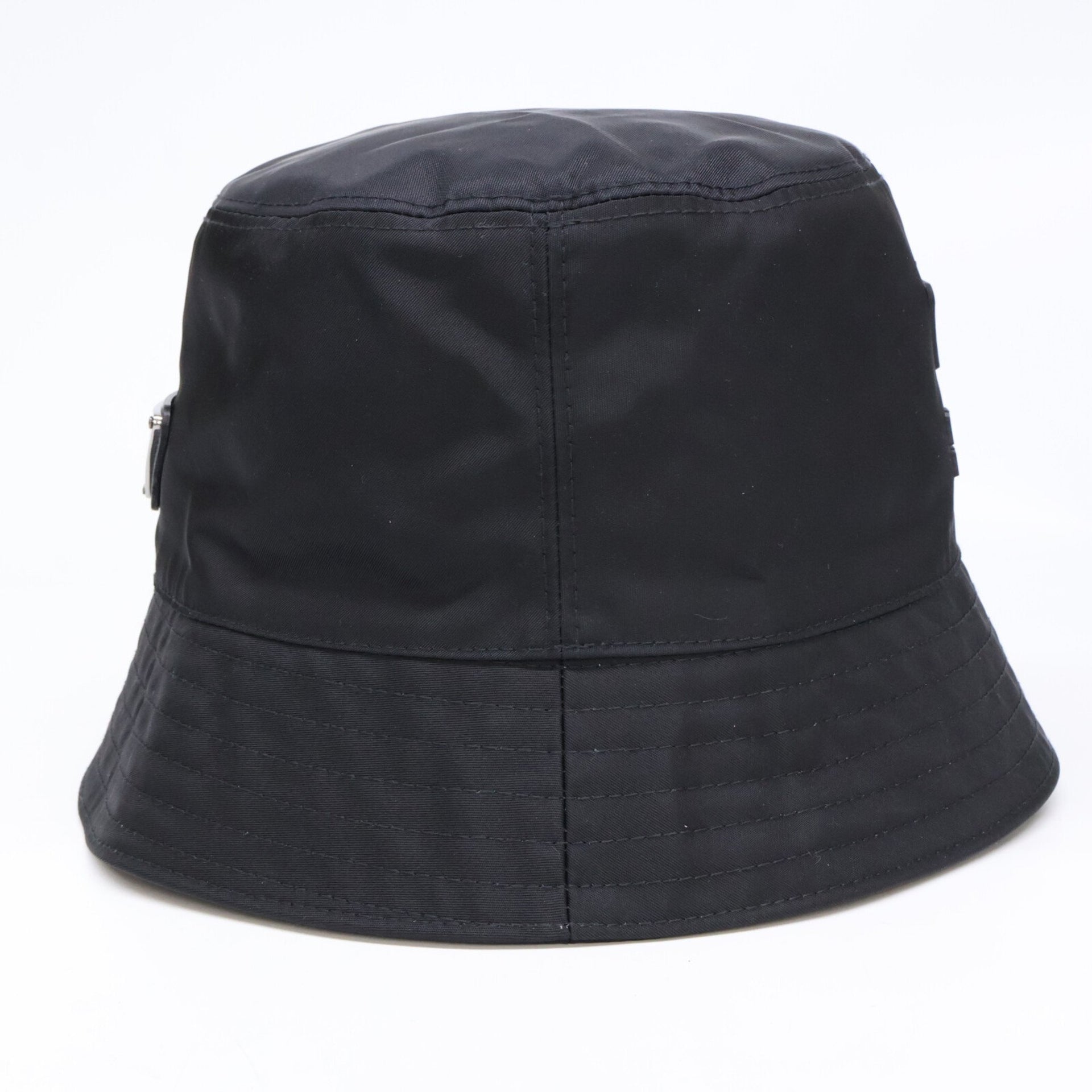 PRADA 2HC137 RE-NYLON Triangle Logo Plate Bucket Hat, Size M, Black, Women\'s