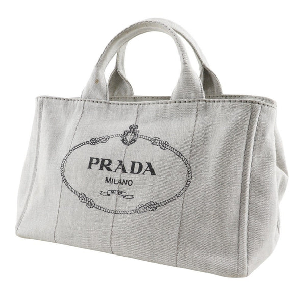 Prada Canapa Handbag with Triangle Plate, 1BG439, Light Gray Denim, 2-Way, Women\'s