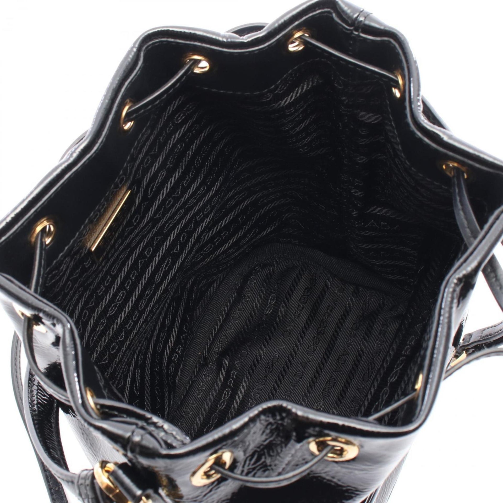 Prada Duet Bucket Bag, Handbag, Patent Leather, Naplak, Women\'s, Black, 1BH038_2DNT_F0002_V