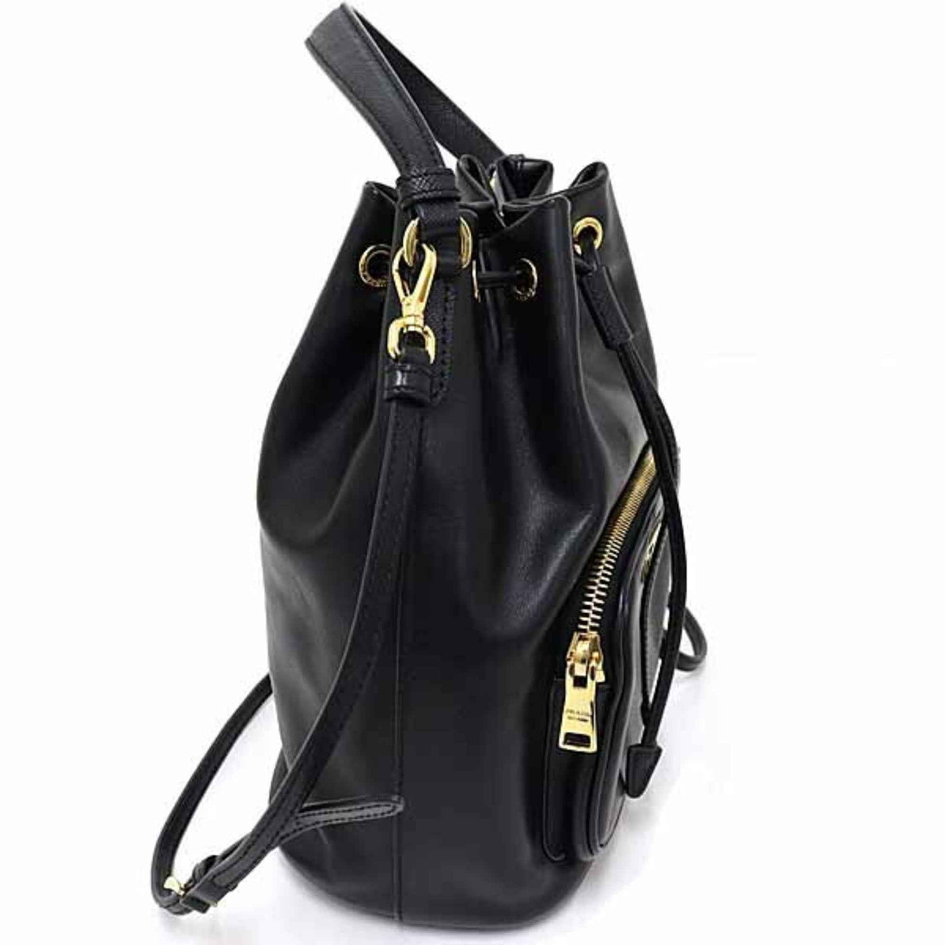 Prada Duet Bucket Bag Shoulder in Soft Calfskin and Saffiano Leather, Nero Black, 1BH038