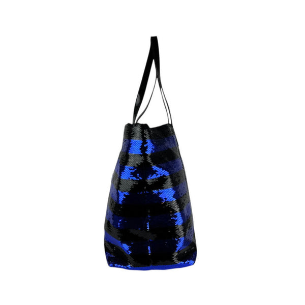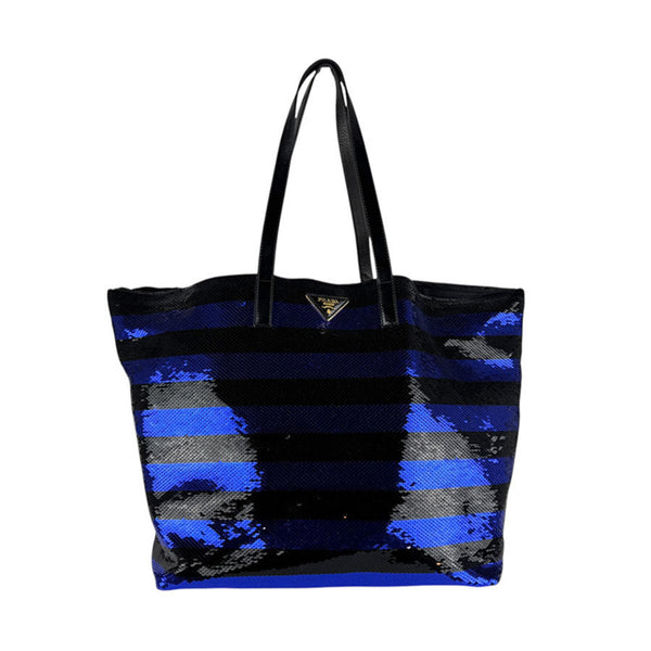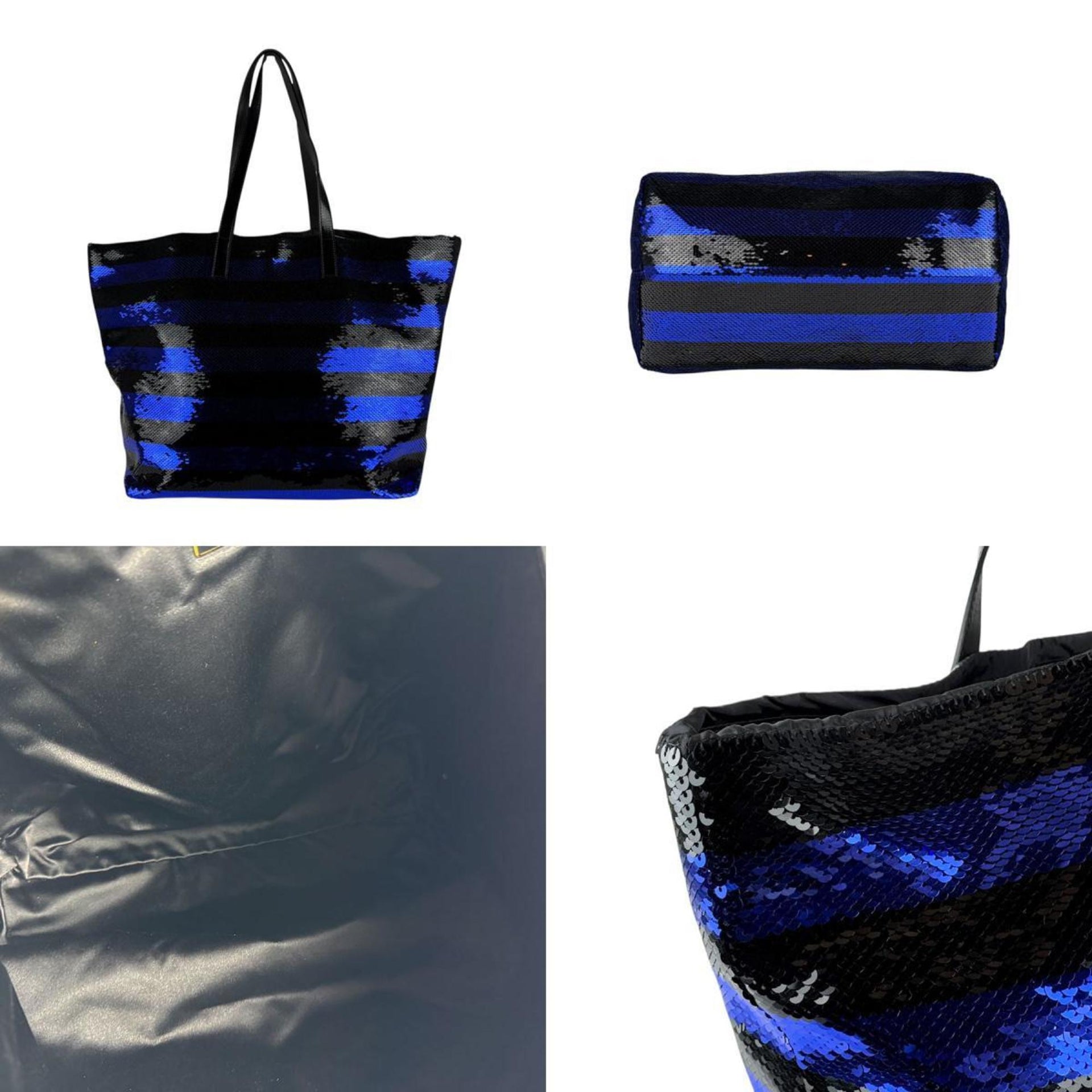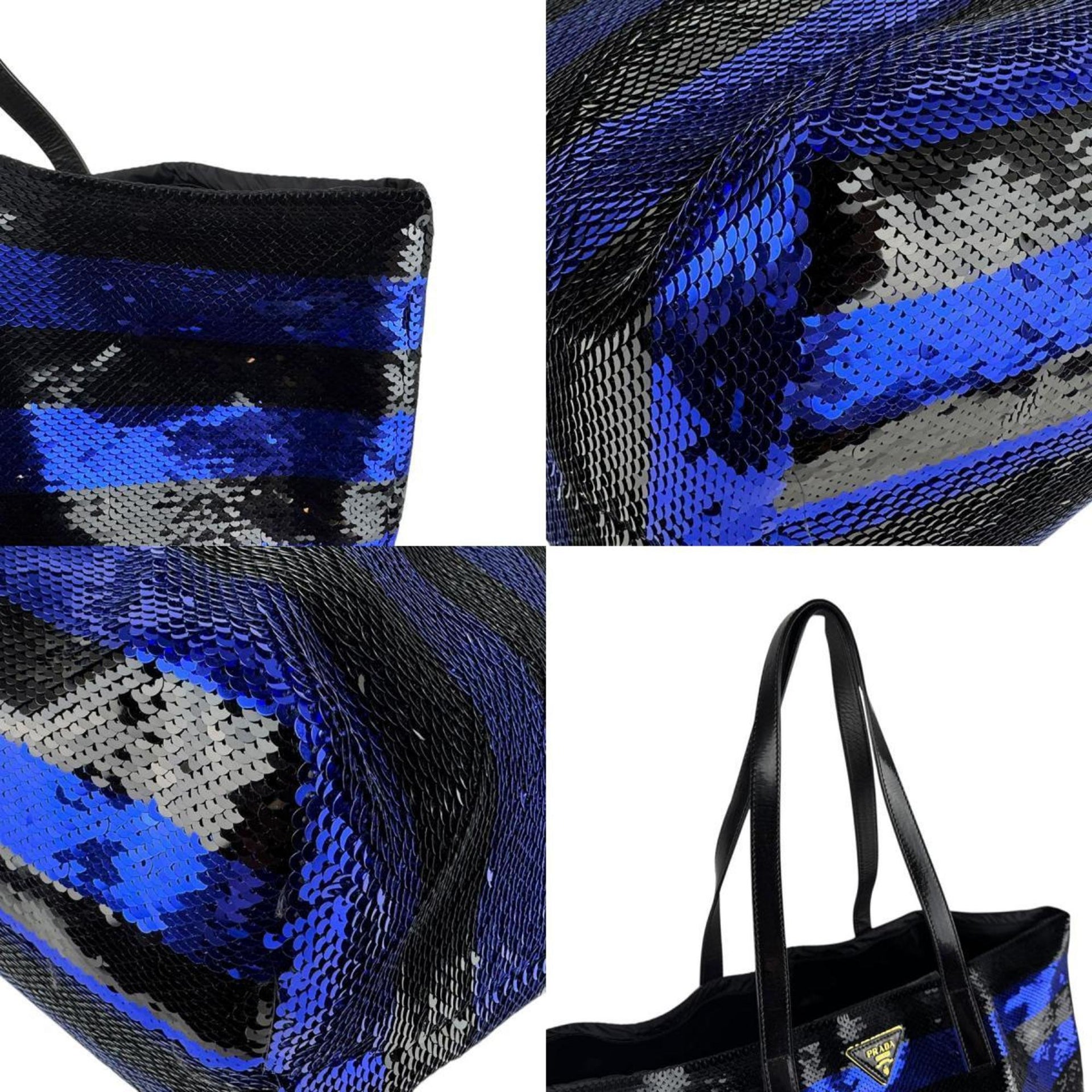 PRADA handbag sequined patent leather black x blue women\'s BR4727 z4837