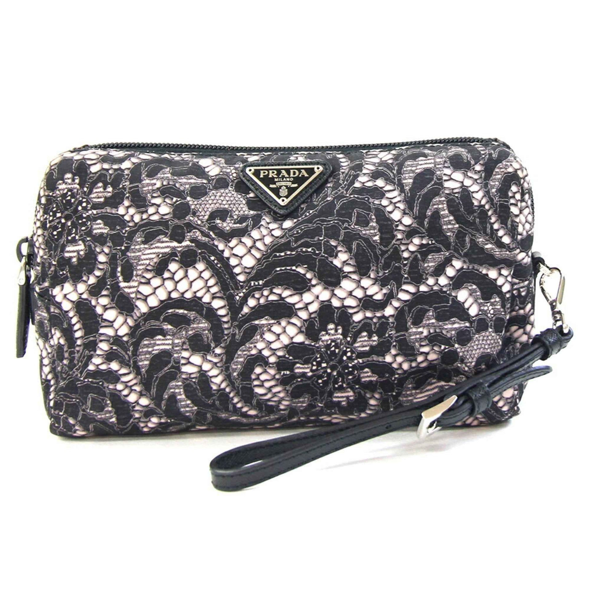 Prada Pouch 1NE693 Pink Beige Black Nylon Leather Clutch Bag for Women