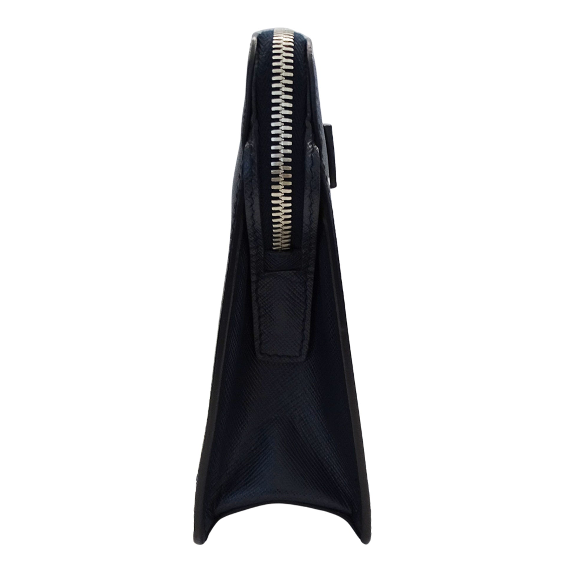 Prada PRADA Men\'s Brand Clutch Bag/Second Bag Saffiano Leather in Navy and Orange with Silver Hardware