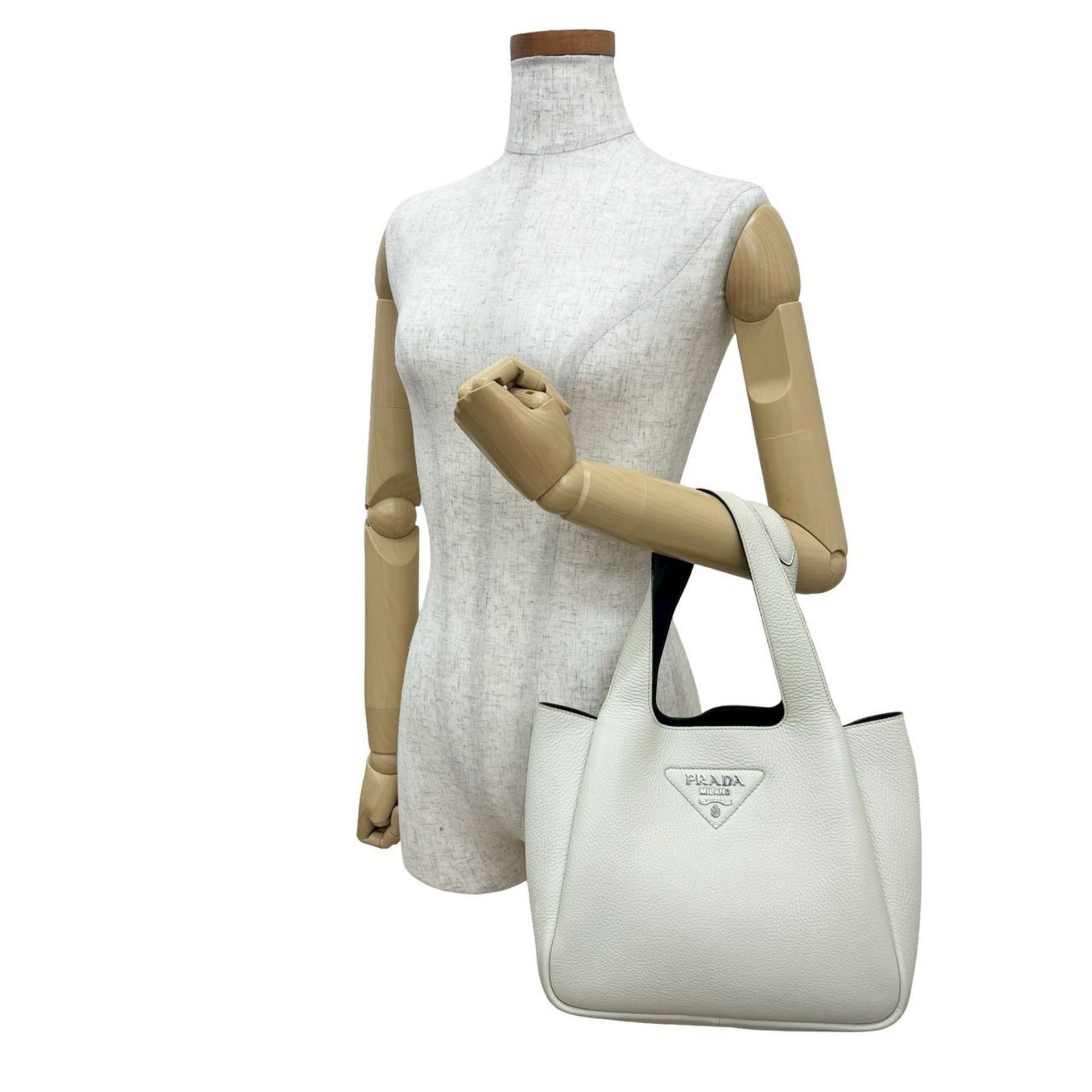 PRADA Prada Triangle Logo Plate Hardware Vitello Dino Leather Handbag Mini Tote Bag White 44615