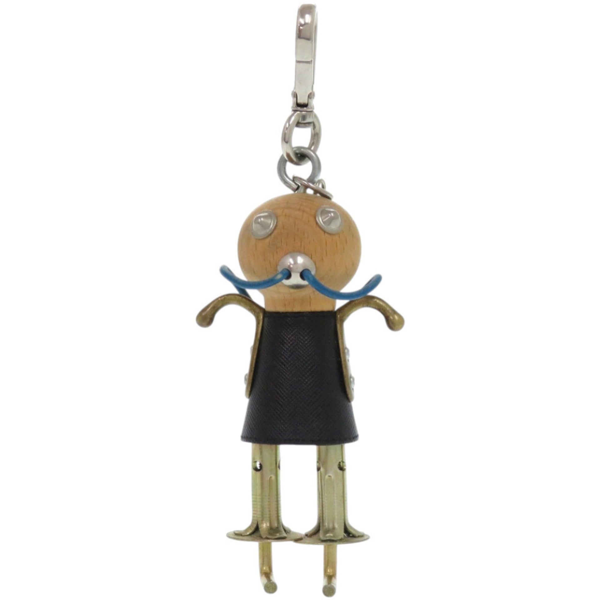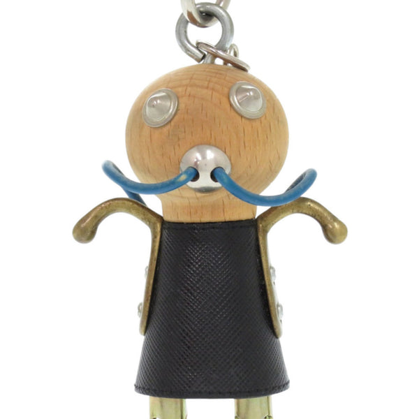 Prada Robot Leather Wood Metal Black Keychain 1707 PRADA