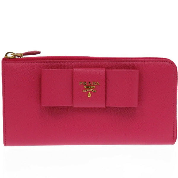 Prada Round Ribbon 1M0506 Leather Saffiano Peony 1211 Long Wallet
