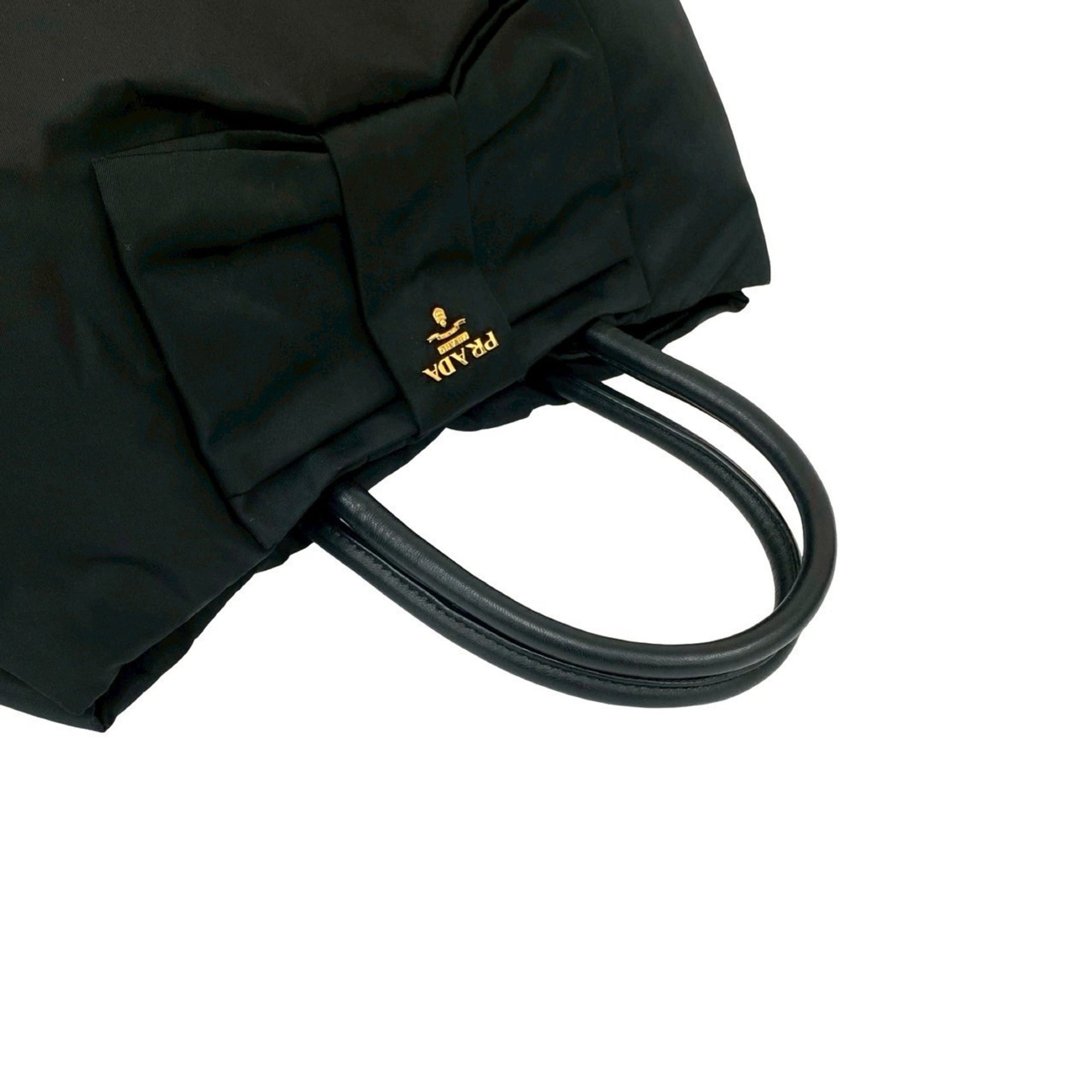 PRADA Tessuto nylon and leather handbag/mini tote bag with logo hardware ribbon motif, black, 63258