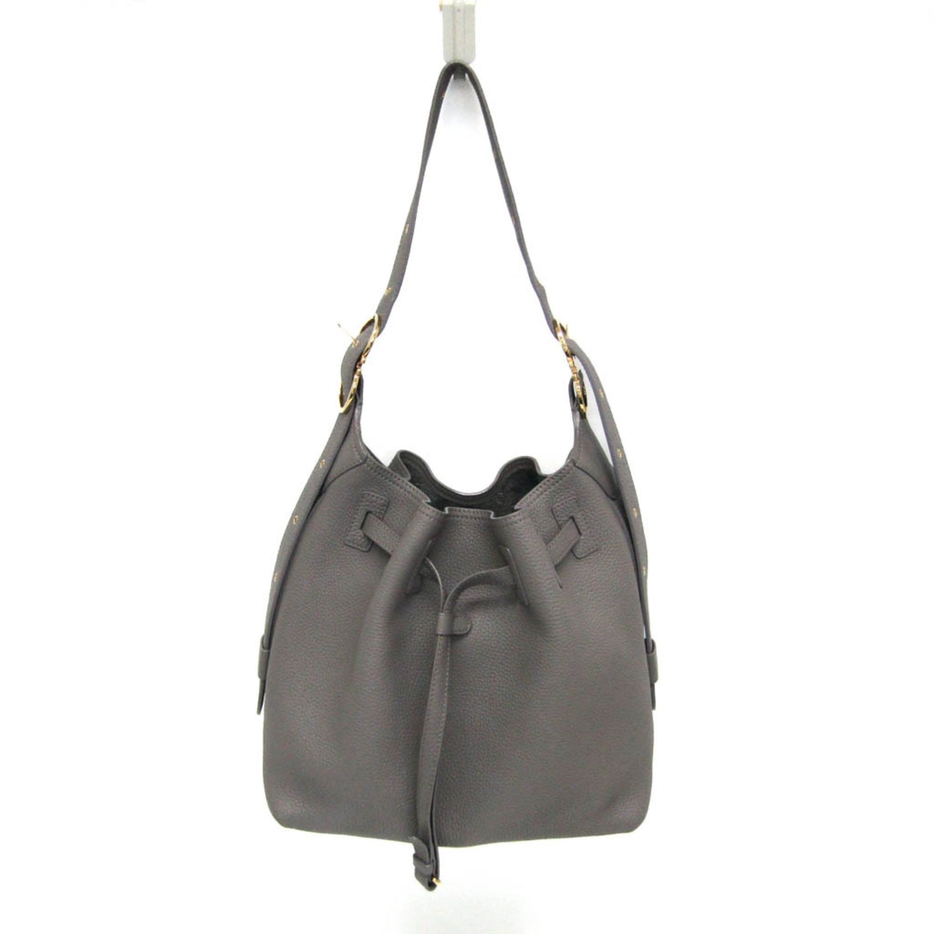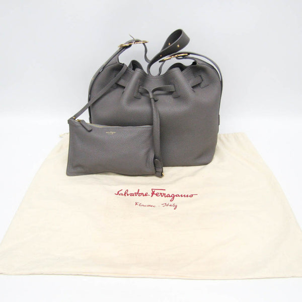 Salvatore Ferragamo Drawstring Bag AU-21 G586 Women\'s Leather Shoulder Bag Gray