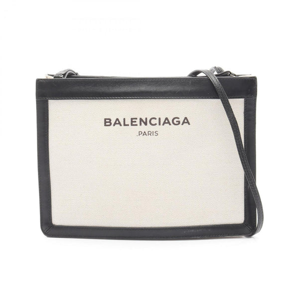 Balenciaga BALENCIAGA Navy Pochette Shoulder Bag in Canvas and Leather, Ivory Black, 339937