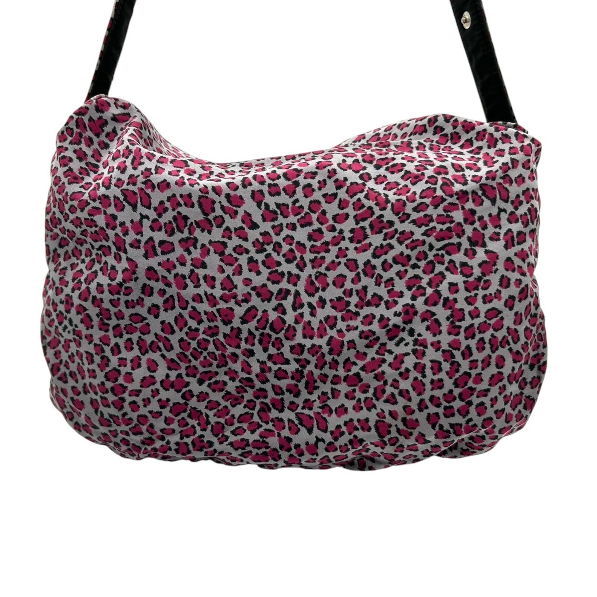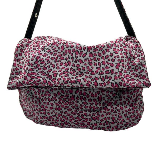 Bottega Veneta One-Shoulder Flap Nylon Leopard Print Shoulder Bag in Pink and Gray, Made Italy, Women\'s, Unique Design, D3