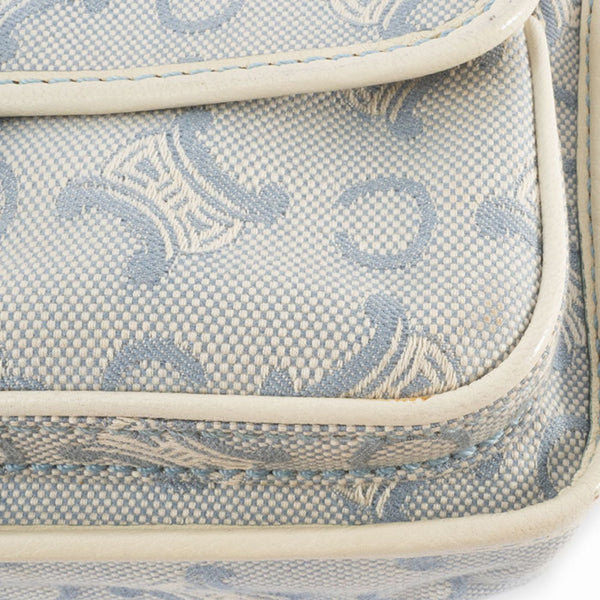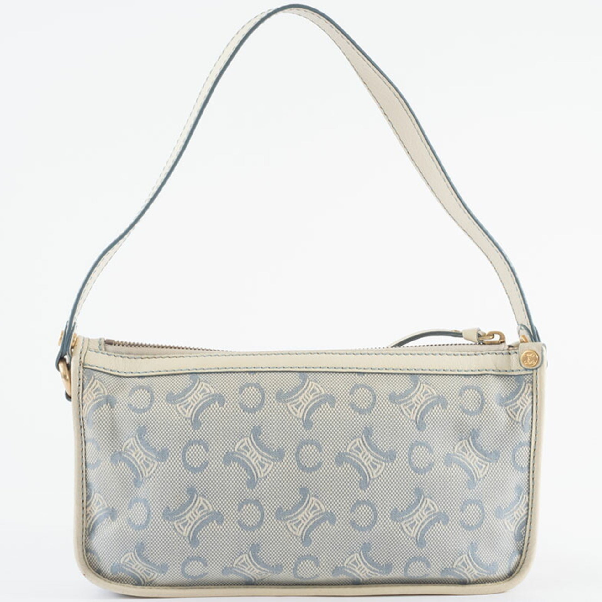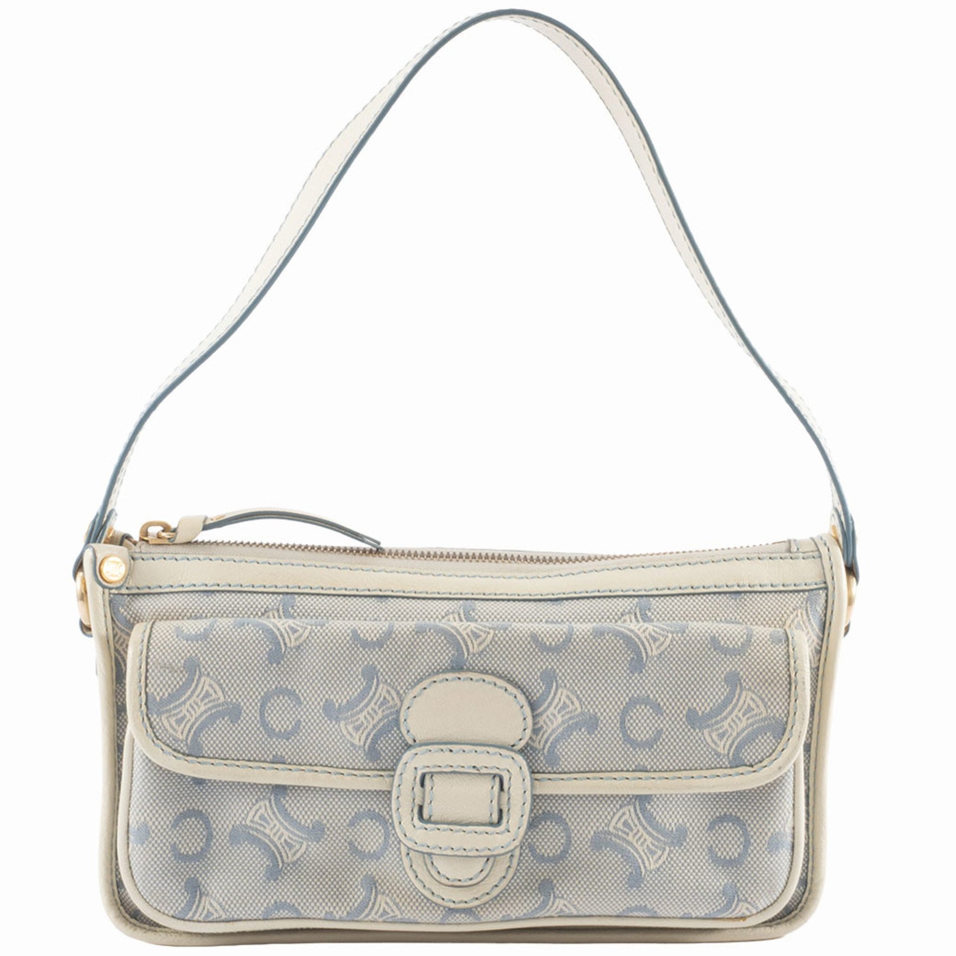 Celine C Macadam Shoulder Bag Canvas Leather White Blue Women\'s Handbag CELINE