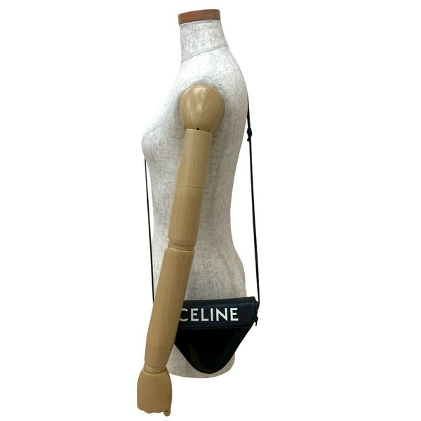 CELINE Triangle Leather 2-Way Mini Shoulder Bag/Pochette/Sacoche in Black (3291a)