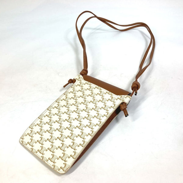 CELINE Triomphe Phone Case/Bail Pouch Shoulder Bag/Pochette Smartphone Case, PVC/Nylon, Beige, 10G332CQD