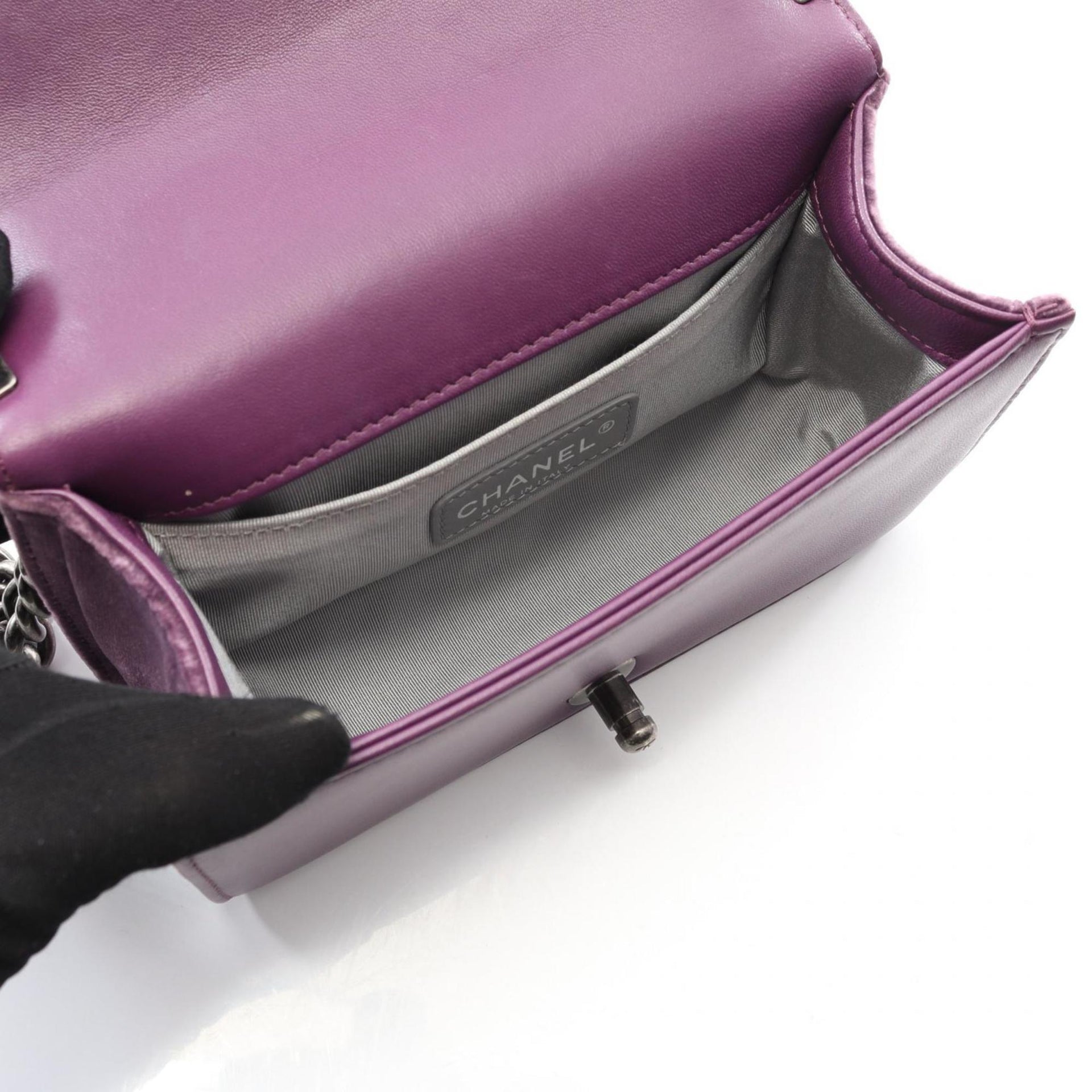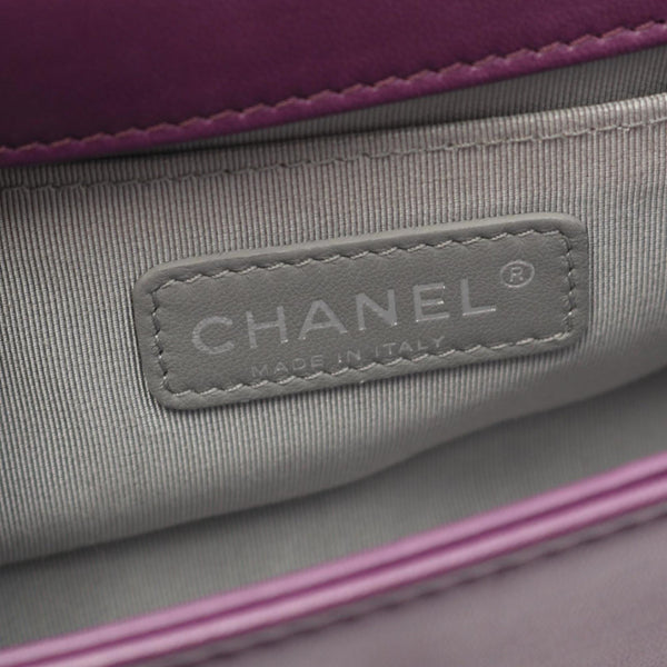 CHANEL Boy Chanel Small Shoulder Bag, Fabric and Leather, Women\'s, Purple