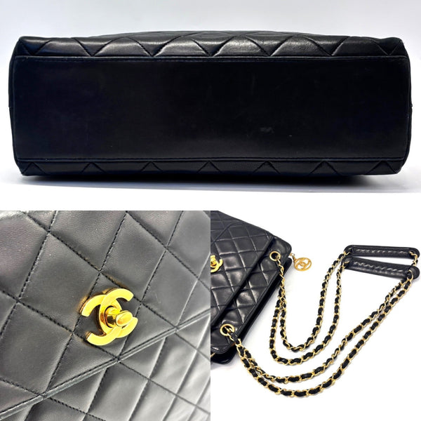 CHANEL Chain Tote Matelasse Shoulder Bag in Black Lambskin