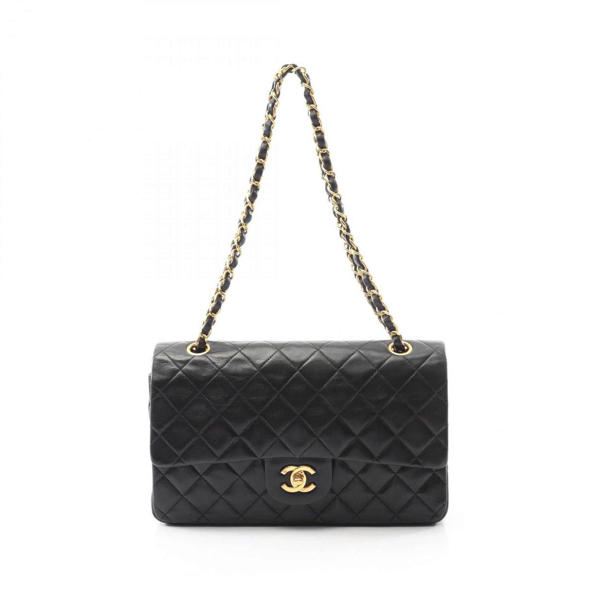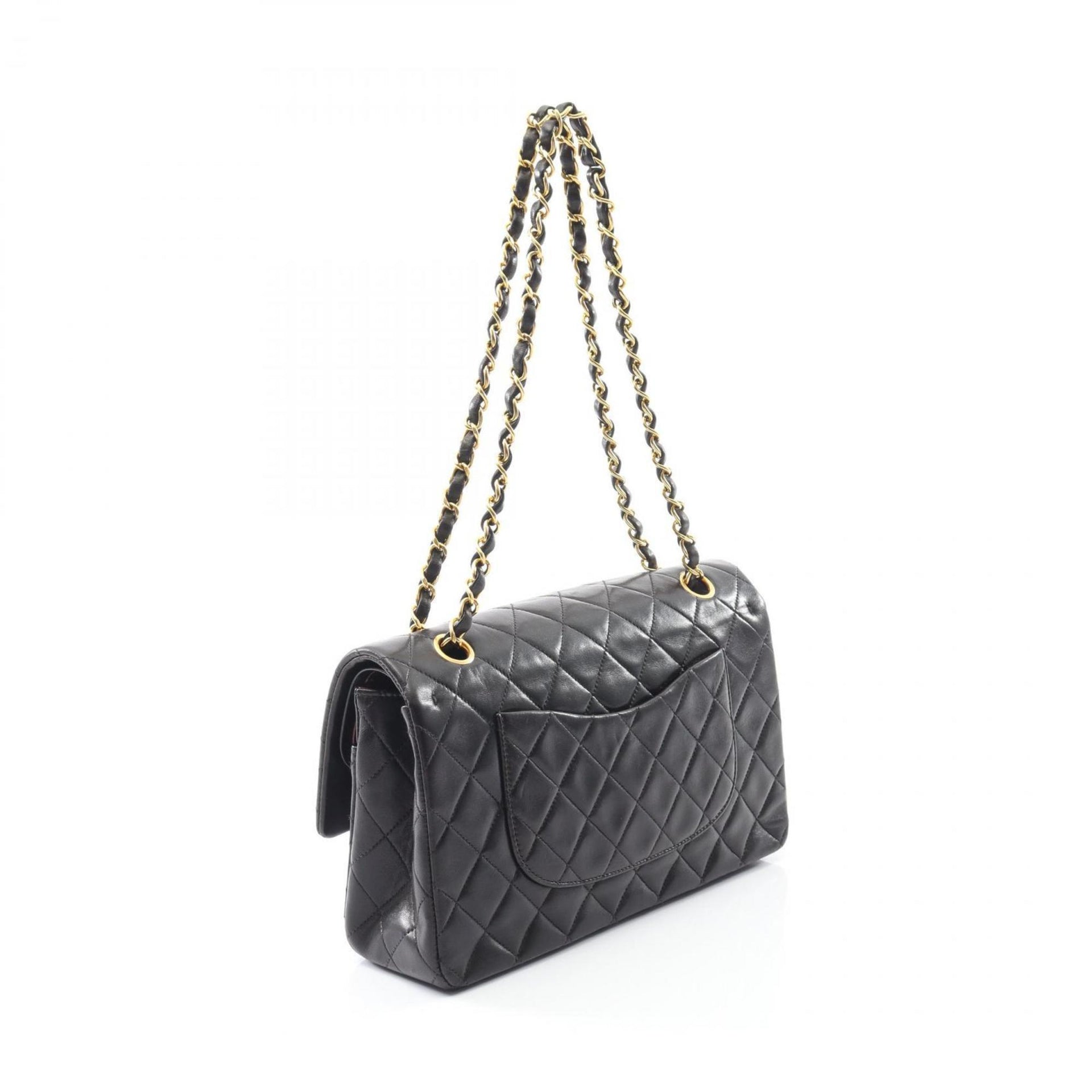 CHANEL Matelasse Double Flap Shoulder Bag in Lambskin Leather, Black