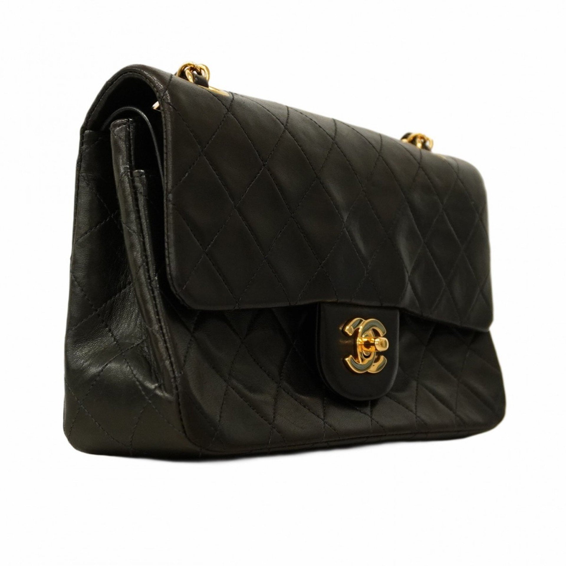 Chanel Matelasse Shoulder Bag with Double Flap and Chain, Lambskin, Black, Women\'s