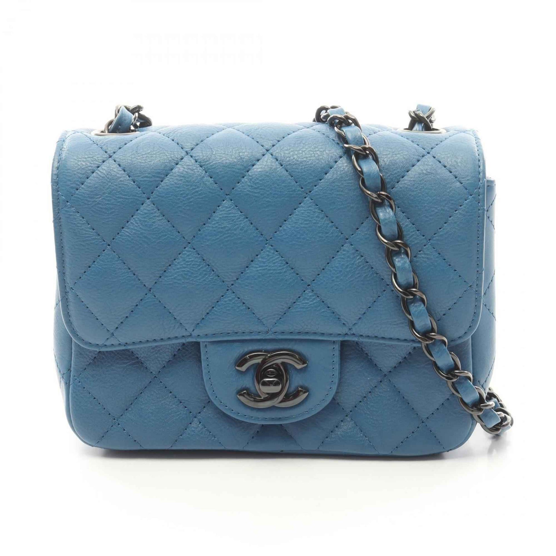CHANEL Mini Matelasse Shoulder Bag, Leather, Women\'s, Blue, A35200