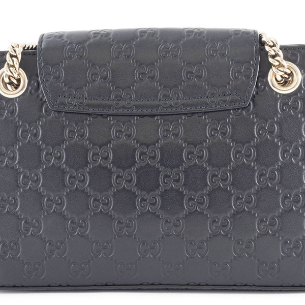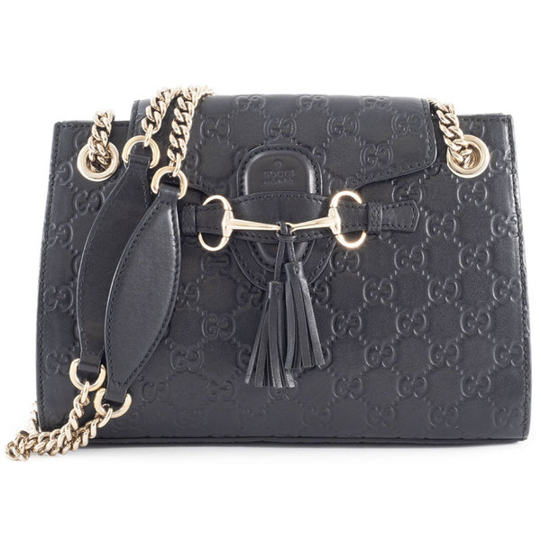 Gucci Emily Guccissima Shoulder Bag 369621 in Black Leather with Horsebit Tassel Detail.