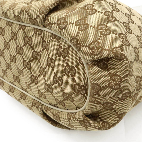 GUCCI GG Canvas Shoulder Bag, Leather, Khaki Beige, White, 388930