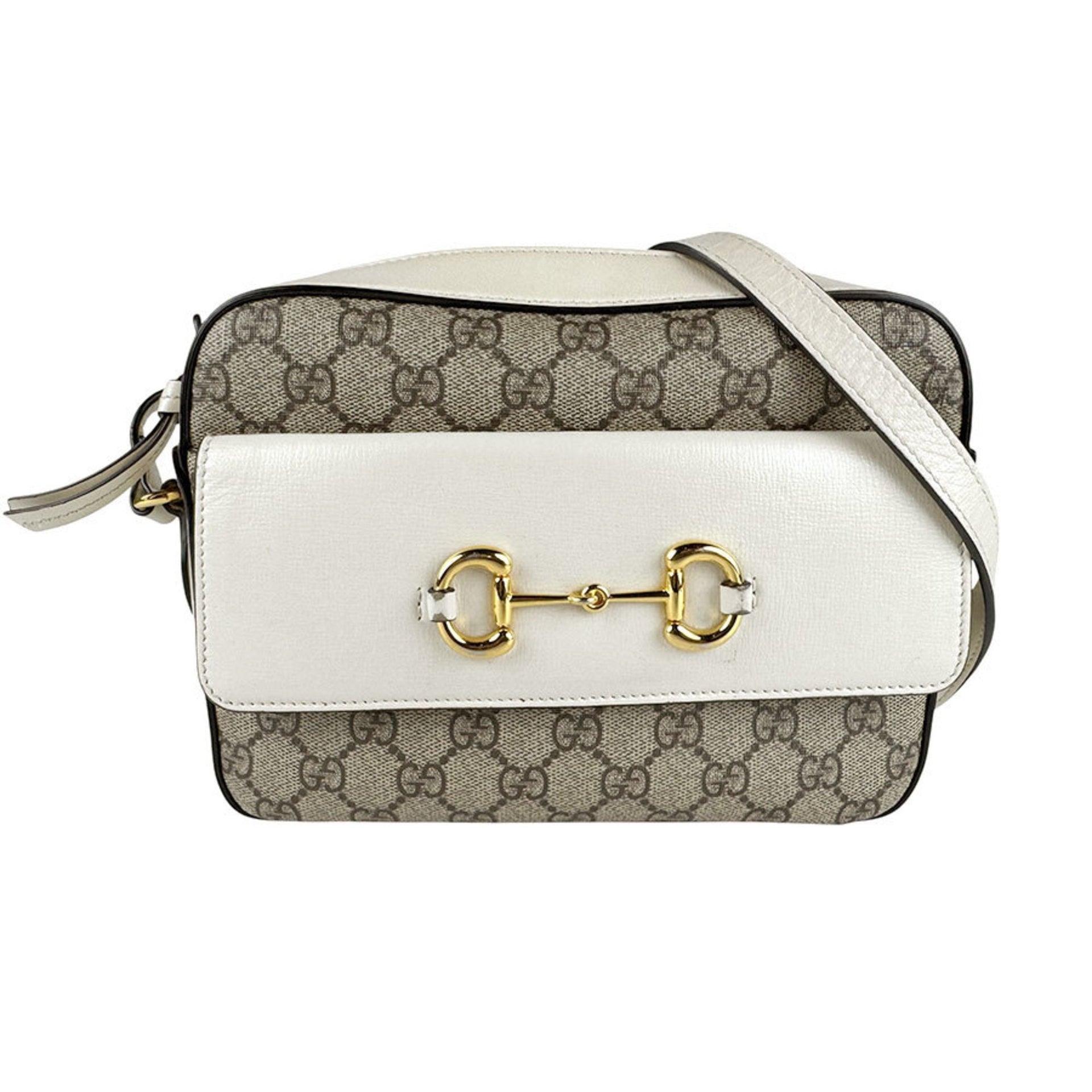 Gucci Horsebit Shoulder Bag in GG Supreme Canvas, Ivory and Brown, Women\'s, 645454 z7164