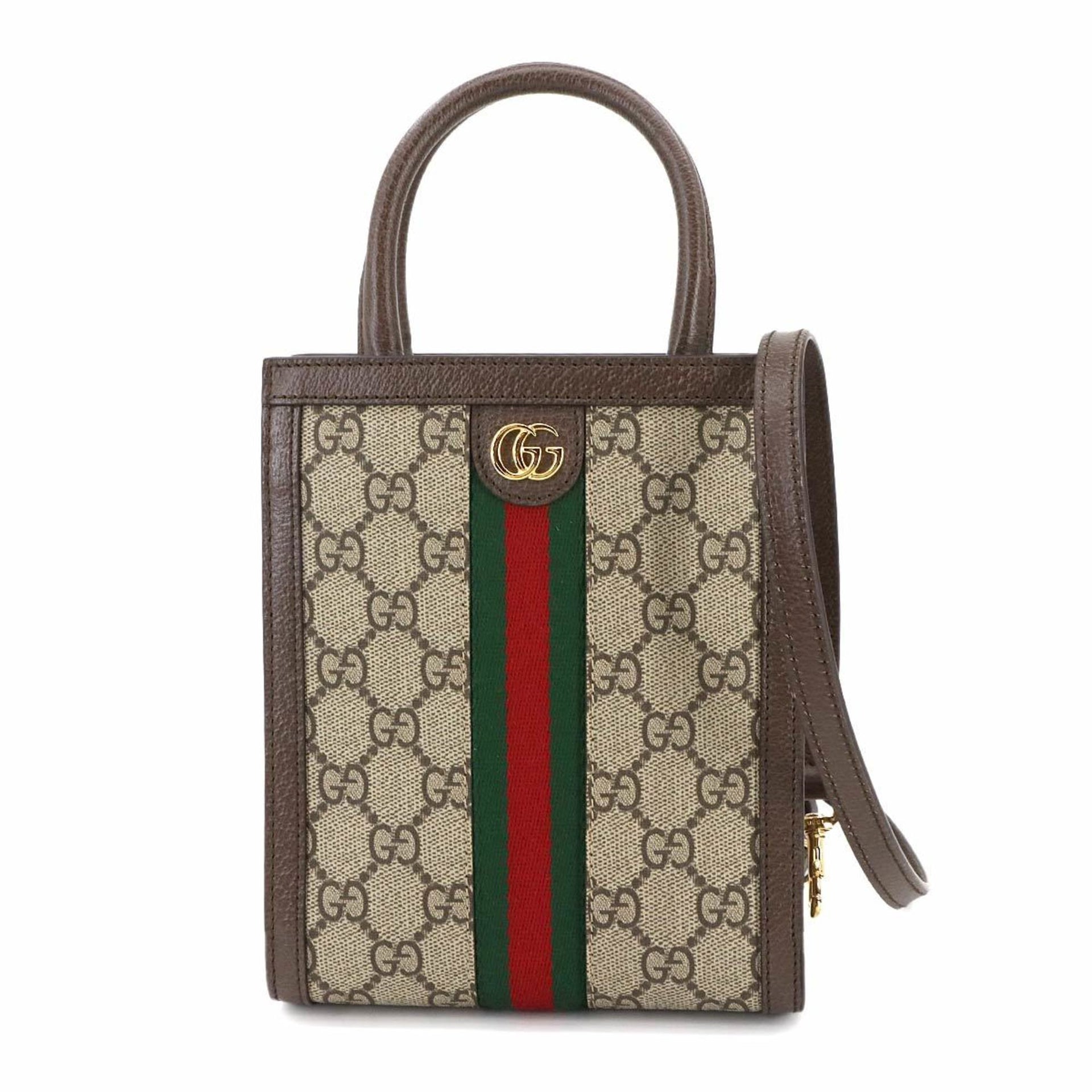 Gucci Ophidia 2-way hand/shoulder bag in GG Supreme canvas and leather beige brown (772317)