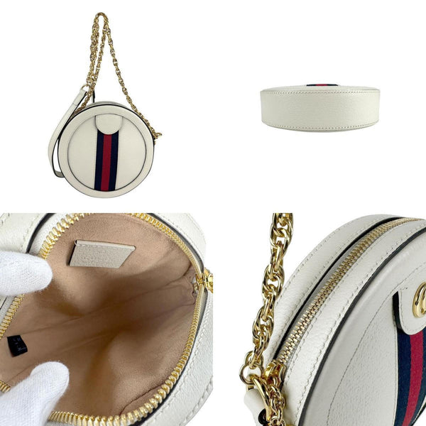 Gucci Ophidia Round Shoulder Bag in Leather, Metal, Ivory, and Gold, Women\'s, 550618 z6819