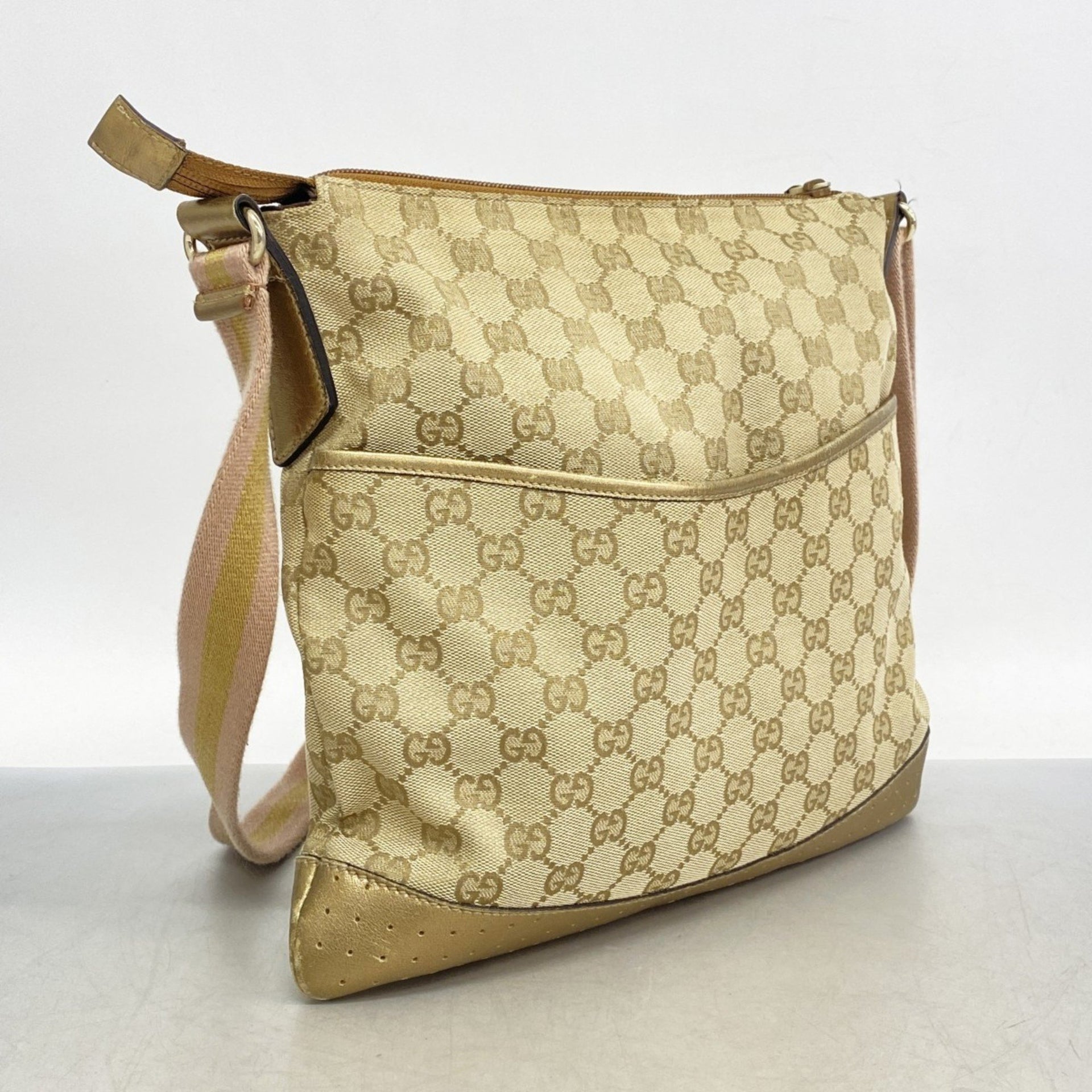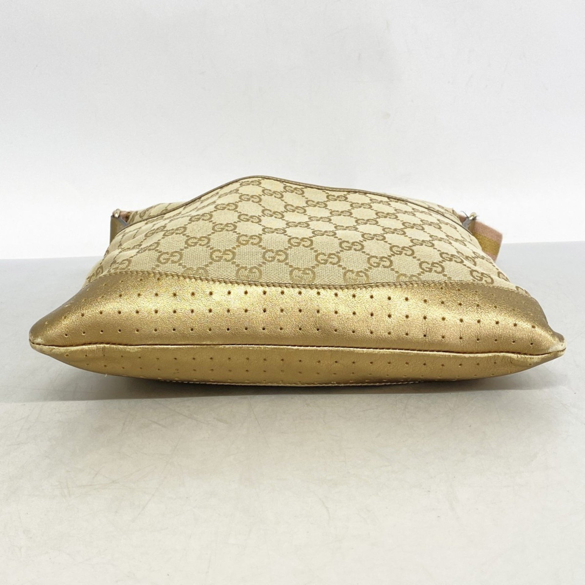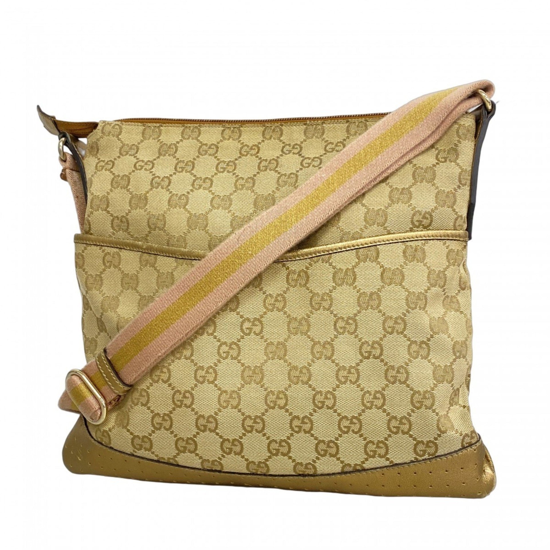 Gucci Shoulder Bag GG Canvas 145857 Beige Gold Champagne Women\'s