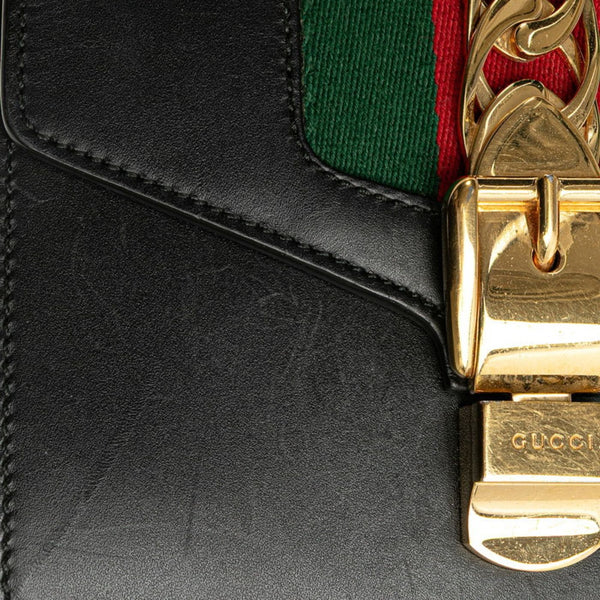 Gucci Sylvie Mini Chain Shoulder Bag 431666 Black Leather Women\'s GUCCI