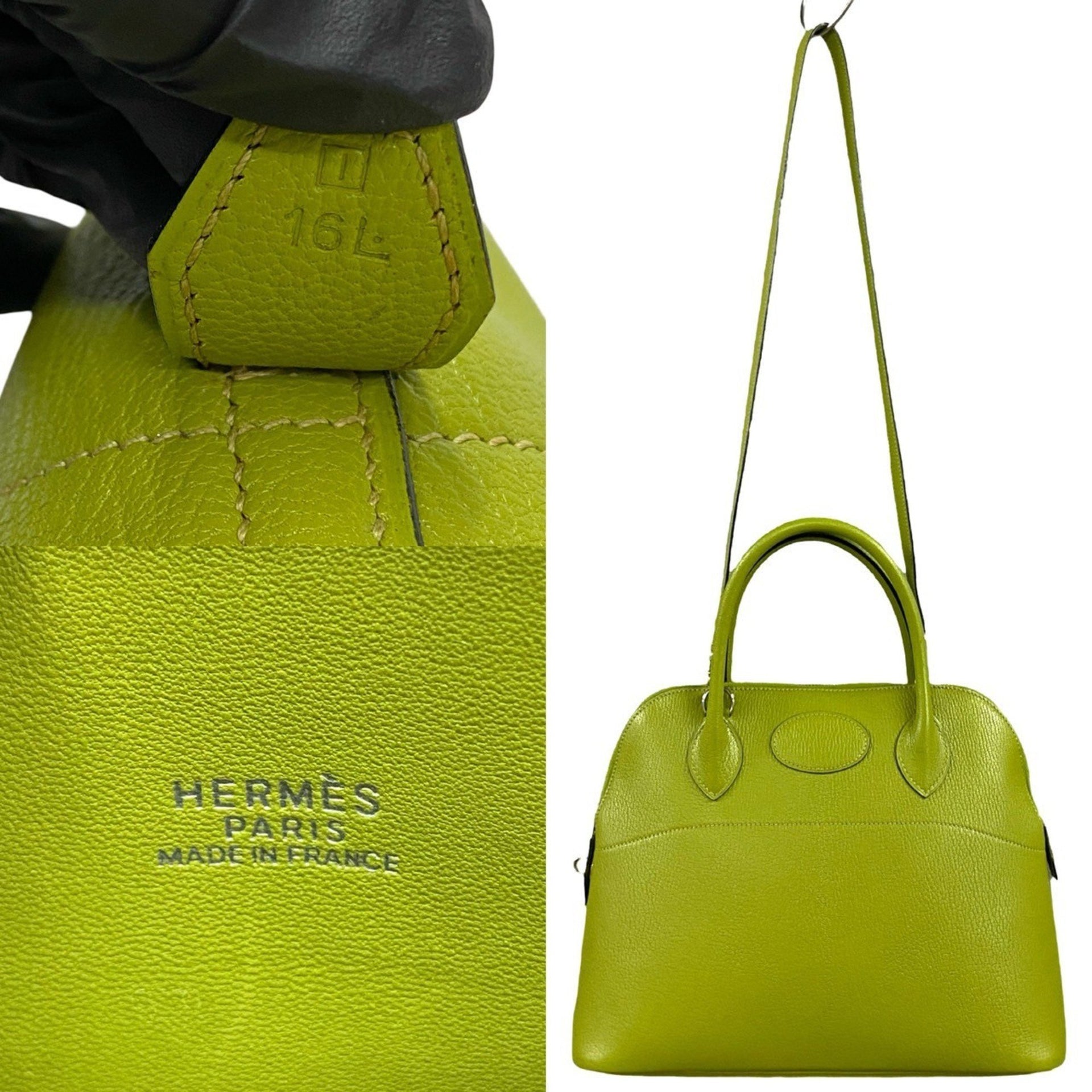 HERMES Bolide 31 Chevre 2-way Handbag/Shoulder Bag, Anise Green, 606-3