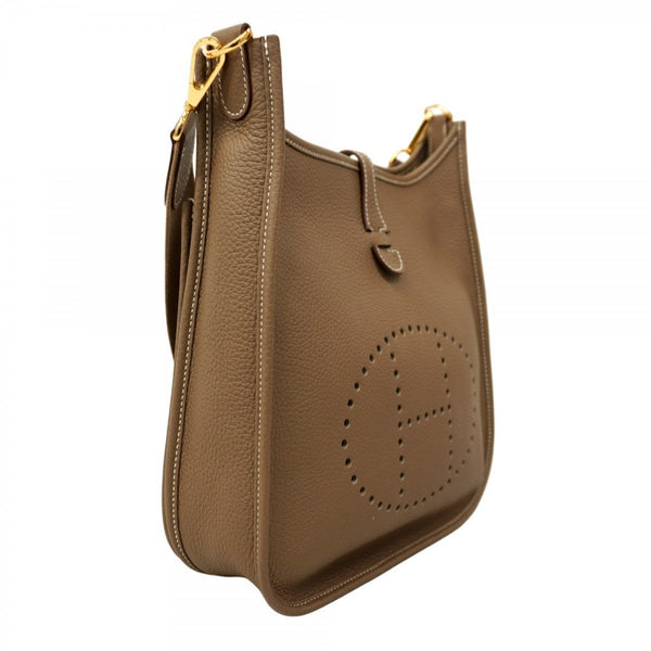 Hermes Hermès Evelyn 3PM Shoulder Bag in Taurillon Clemence Etoupe with B Stamp for Women